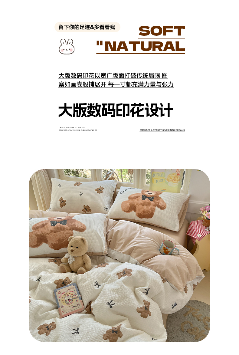商品名称:(总)如一 2026新款全棉纯棉华夫格大版数码印花四件套