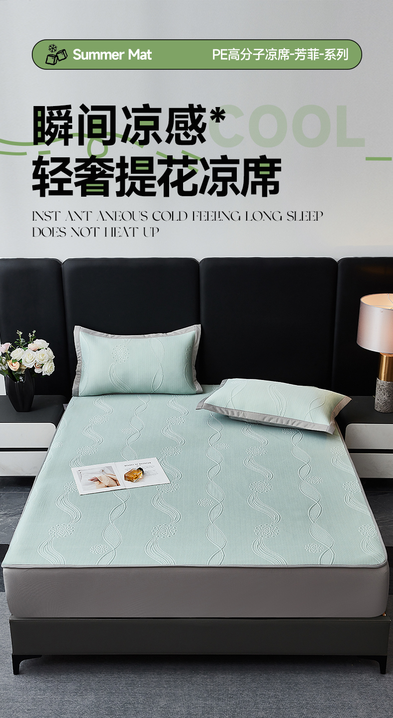 (总)库里梦家纺 2026新款轻奢高克重复合PE高分子凉席床笠三件套-芳菲,芳菲-粉色床席款,芳菲-灰色床席款,芳菲-蓝色床席款,芳菲-绿色床席款,芳菲-粉色床笠款,芳菲-灰色床笠款,芳菲-蓝色床笠款,芳菲-绿色床笠款