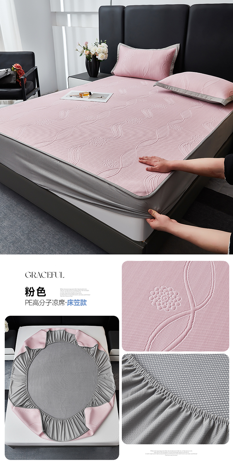 商品名称:库里梦家纺 2026新款轻奢高克重复合PE高分子凉席床笠三件套-芳菲 芳菲-粉色床席款