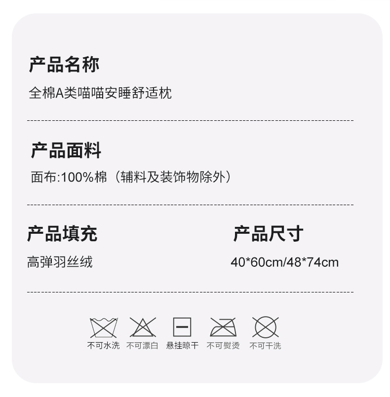 当前位置: 91家纺网 > 商品网购 > 枕头/枕芯/保健枕/颈椎枕 > 枕头枕芯 > 鼎晟纺 2026新款全棉奶芙喵喵安睡舒适枕学生枕头成人枕芯 全棉A+喵喵舒适枕单边款