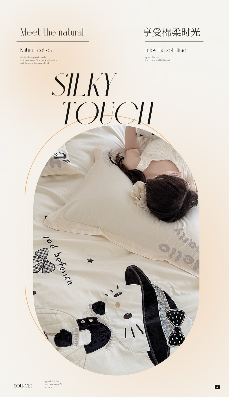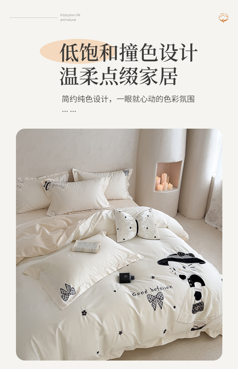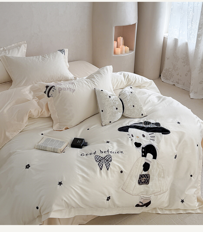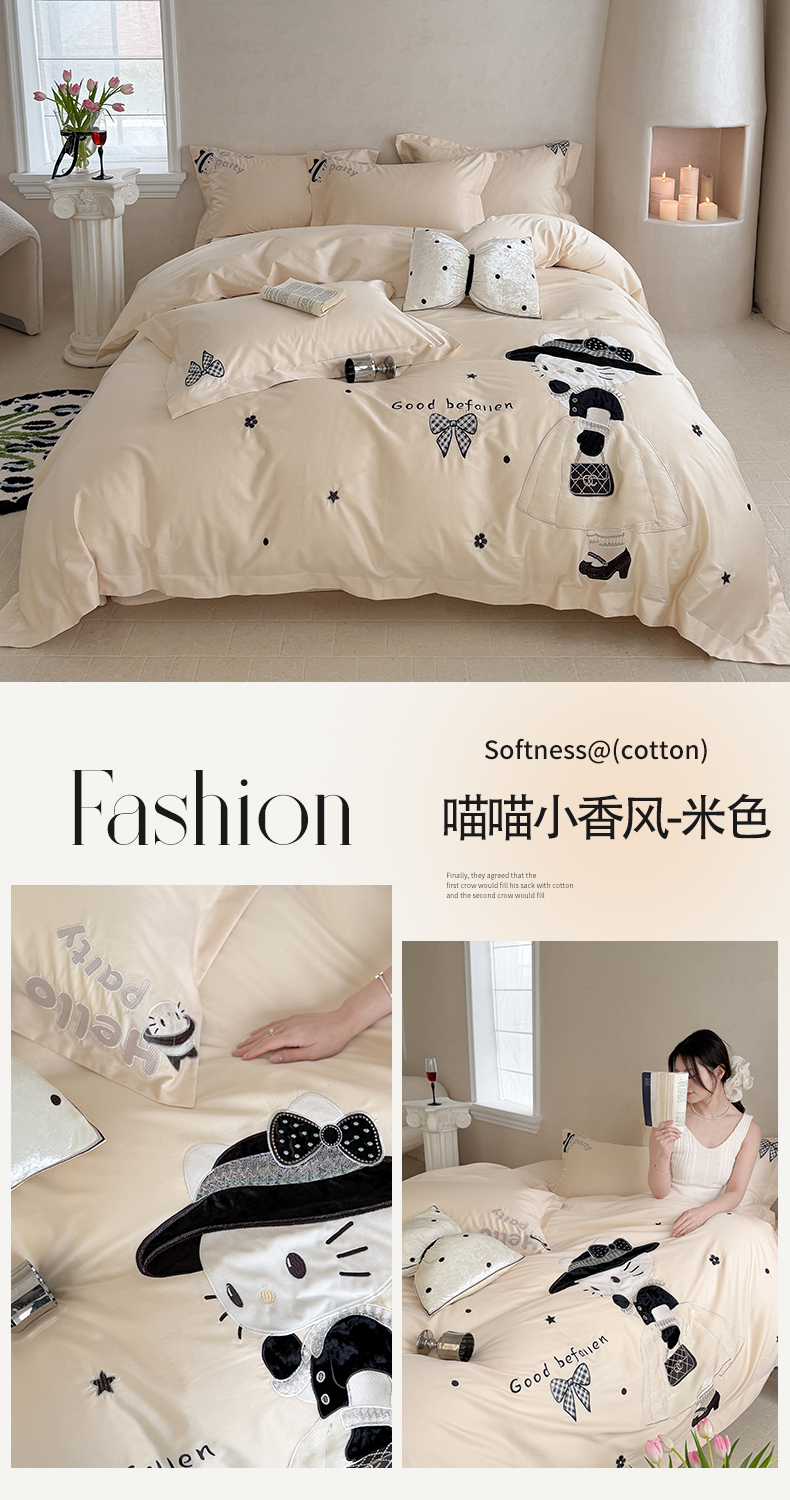 (总)东方合美(原:皇家传奇) 2026新款全棉长绒棉卡通贴布绣四件套-喵喵小香风,喵喵小香风-白,喵喵小香风-粉,喵喵小香风-米色