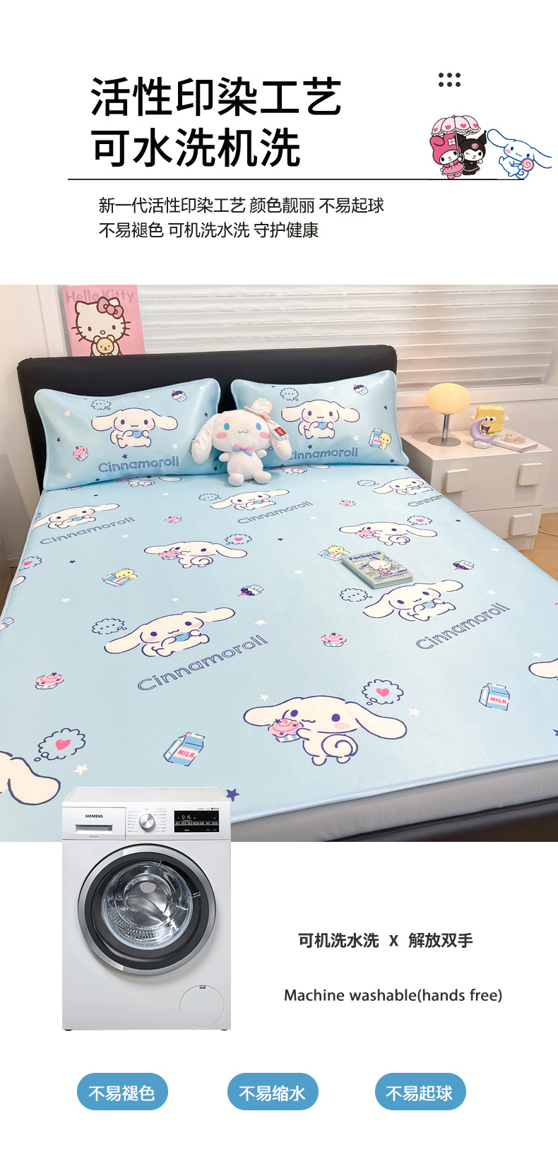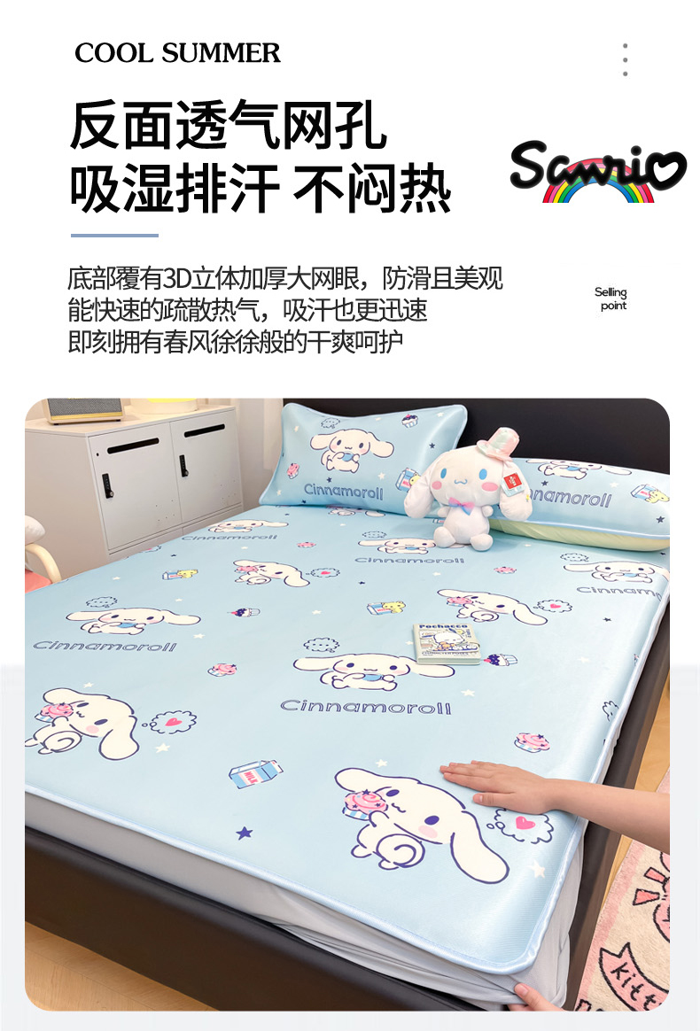 当前位置: 91家纺网 > 商品网购 > 床上用品 > 凉席 > 凉席套件 > 暮思家居 2026新款三丽鸥正版授权数码印花A类可机洗1200D冰丝凉席三件套床笠款系列 床笠款-甜品玉桂狗