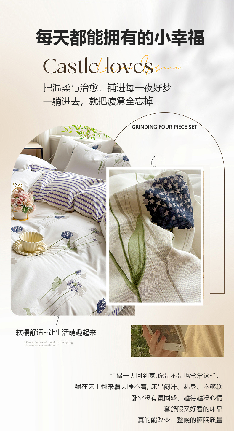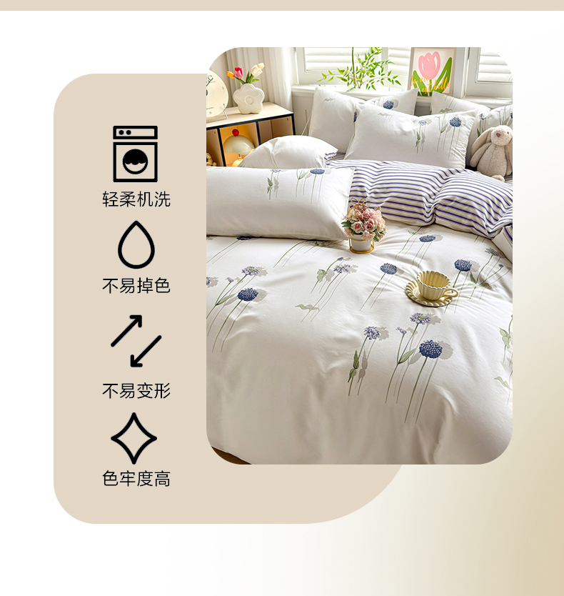 • 91家纺网 家纺一手货源 找家纺 黛妮雅 2026新款AB版全棉印花单被套床单枕套 送买家秀 蒲公英
