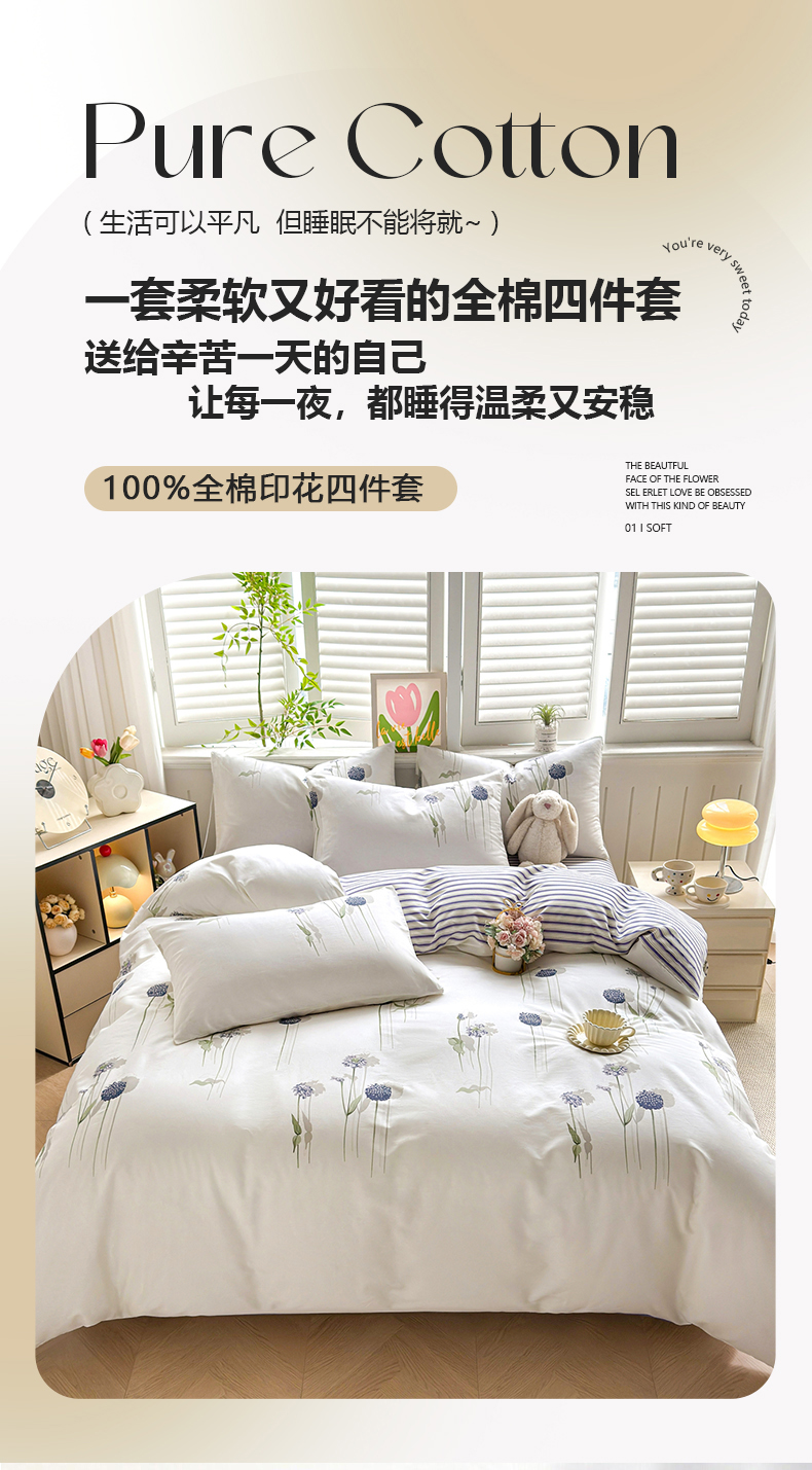 当前位置: 91家纺网 > 商品网购 > 床上用品 > 被套 > 黛妮雅 2026新款AB版全棉印花单被套床单枕套 送买家秀 蒲公英