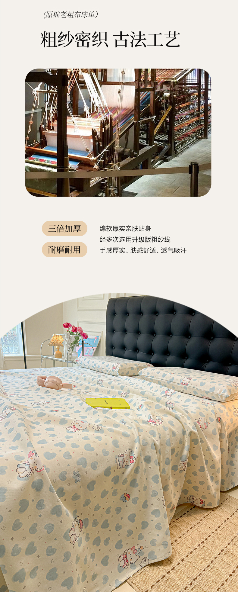 韩巢家纺 2026新款老粗布床单凉席席子床单单件 蓝心凯蒂【老粗布】