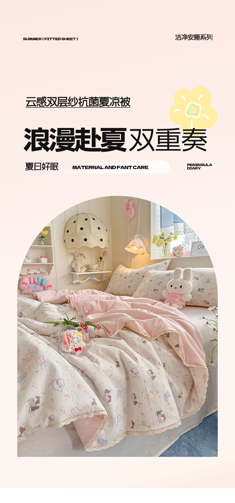 商品名称:优承佳生活馆 2026新款云感双层纱抗菌夏被夏凉被空调被 萌宠乐园