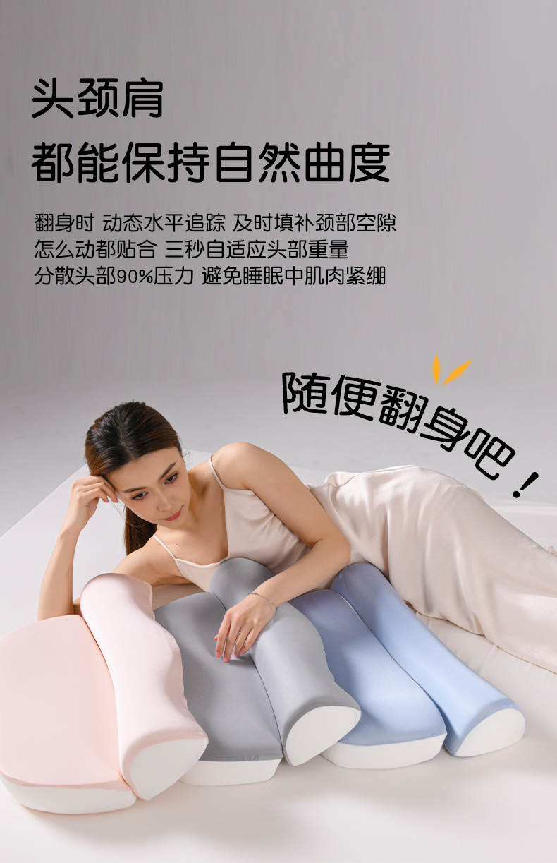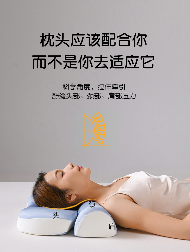 (总)圣楚家纺 2026新款零压助眠深睡牵引枕二合一组合款记忆棉枕枕头枕芯,蓝色,粉色,灰色,组合图