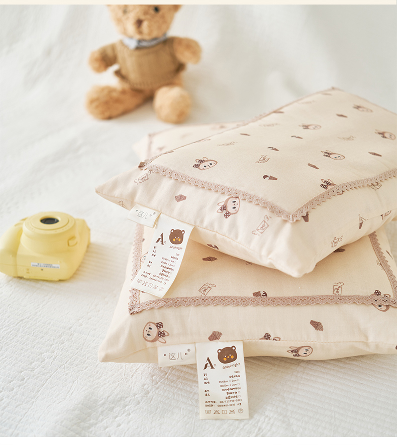 (总)珍贝家纺 2026新款全棉双层纱刺绣花边学生儿童枕枕头枕芯,米小熊,蓝小熊,小南瓜,小汽车,小天鹅,小兔子,小星球,组合图仅供参考不可下单