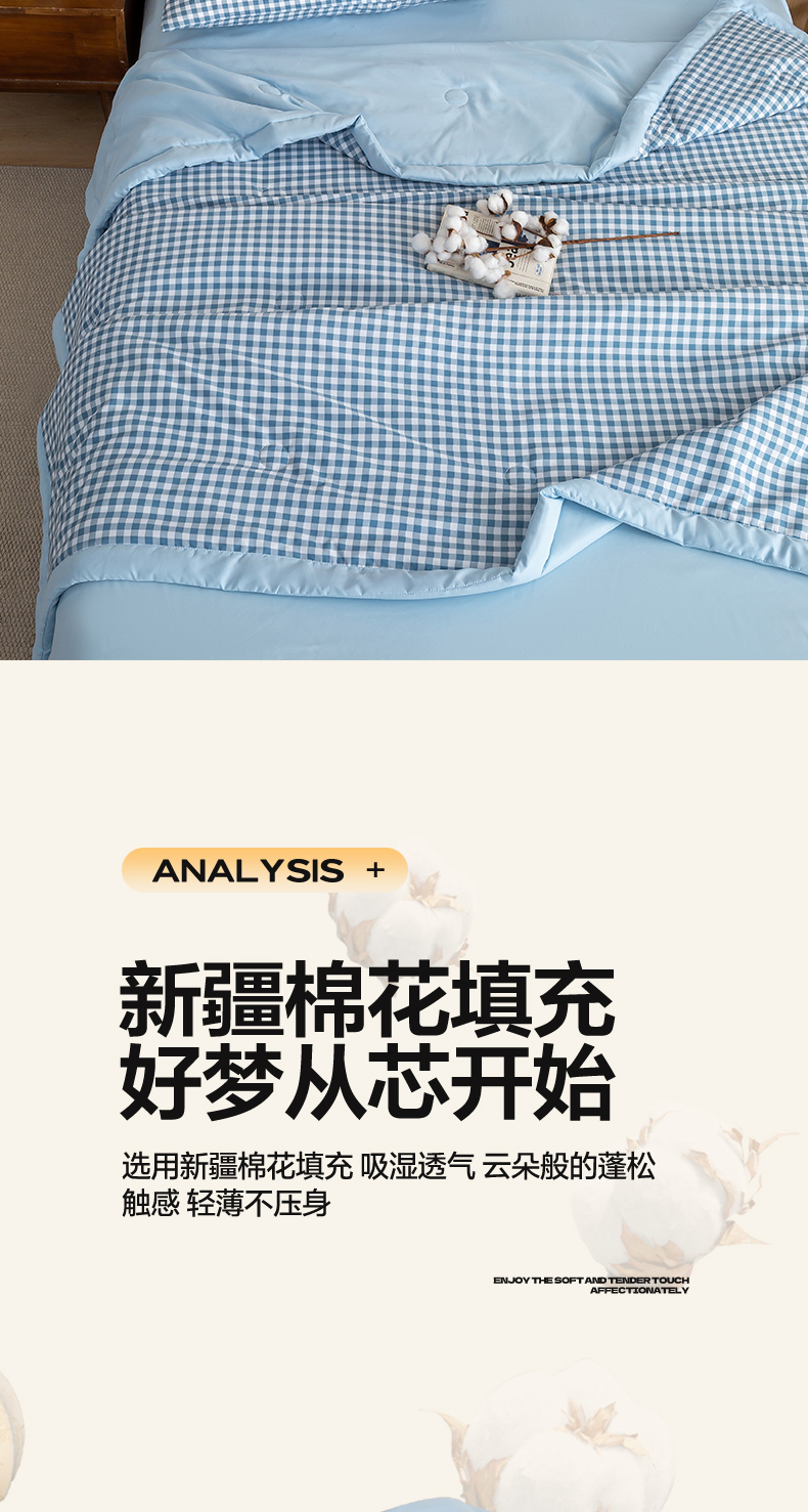 商品名称:憨豆家纺 2026新款无印风水洗棉新疆棉花夏被格子夏凉被空调被子直播被芯 蓝中格