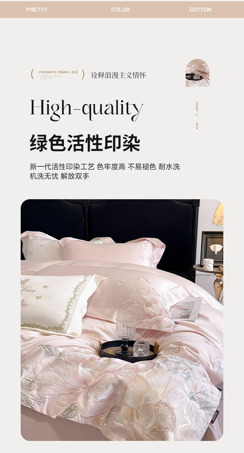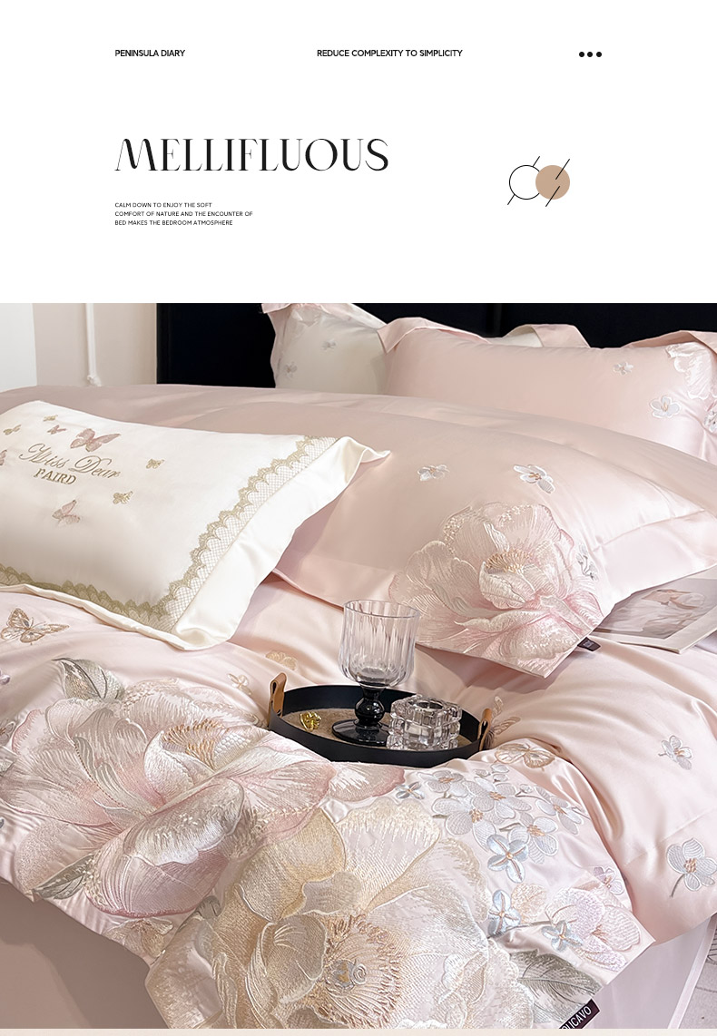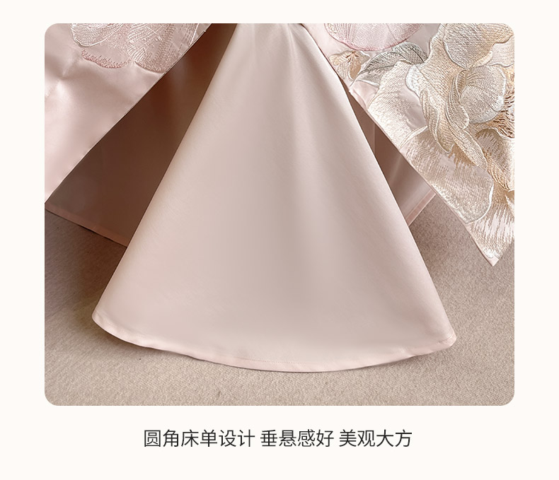 商品名称:2026新品A类100支贡缎长绒棉纯棉四件套全棉重工刺绣全工艺被套床单床笠高端轻奢风床上用品-朵卿 朵卿-颜粉