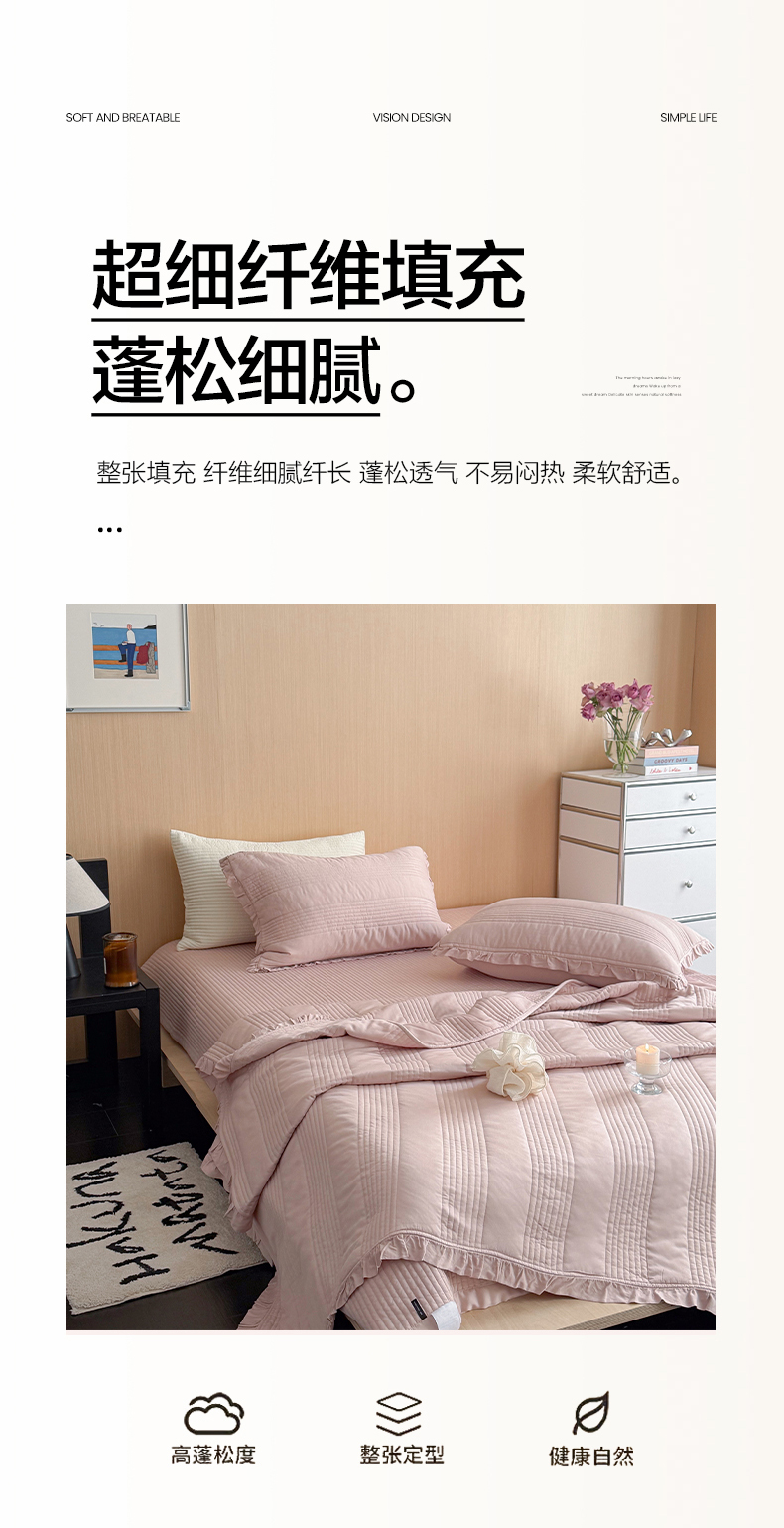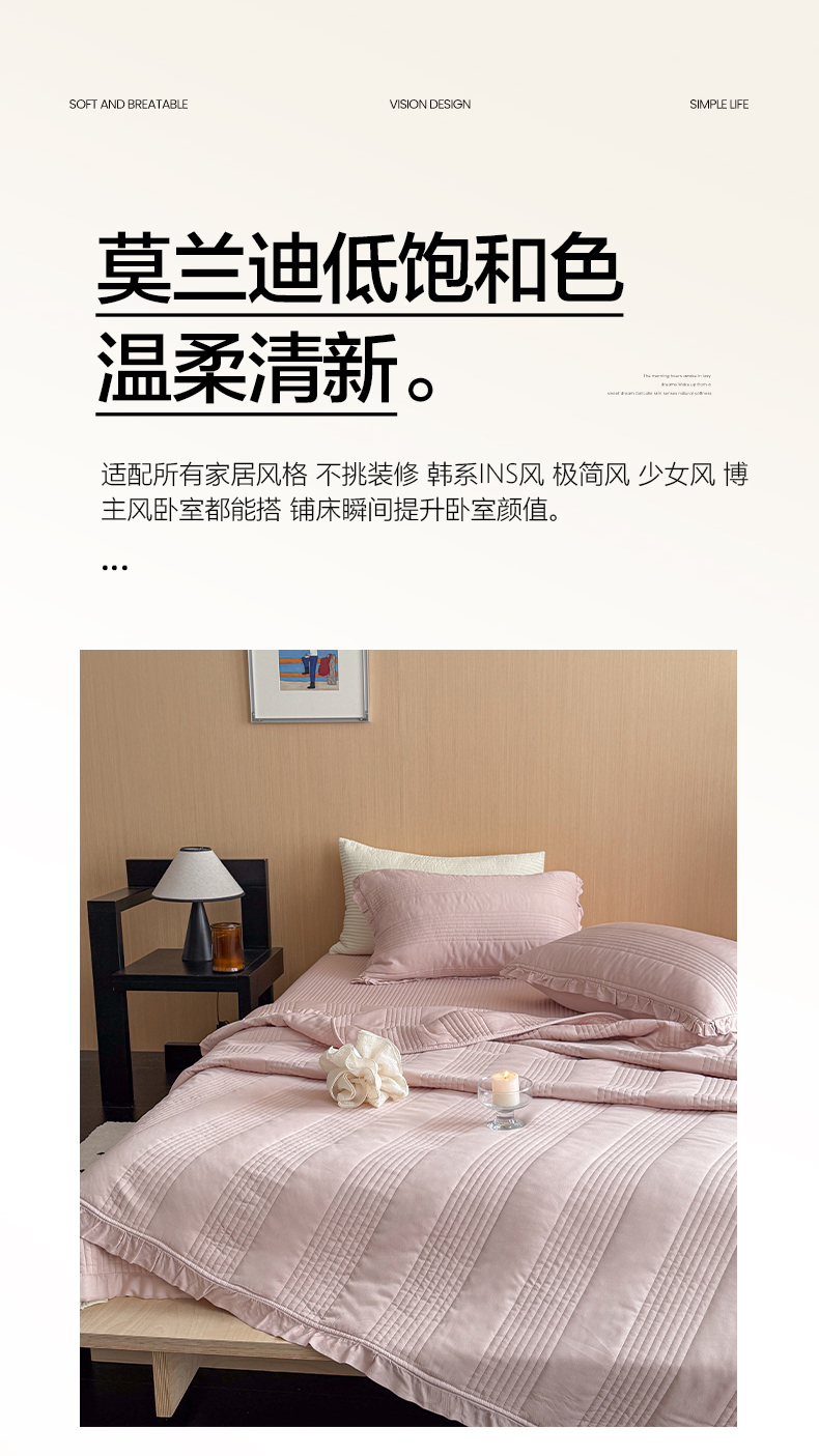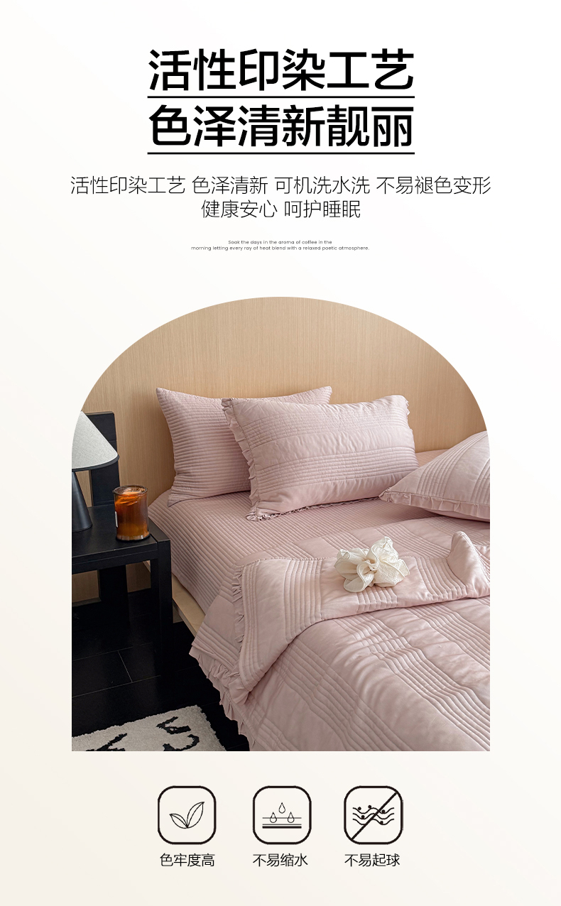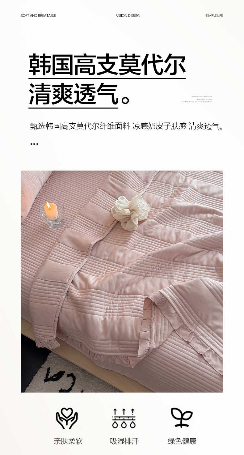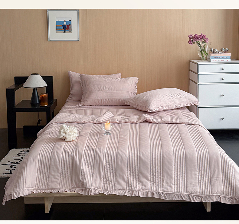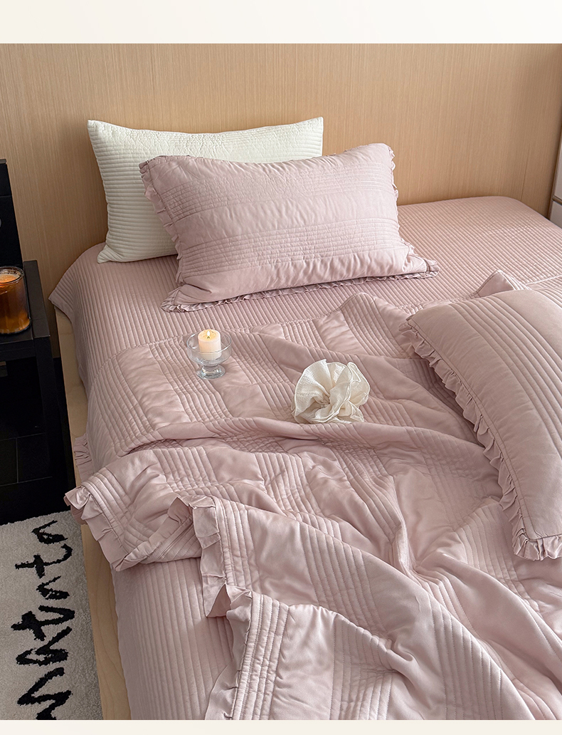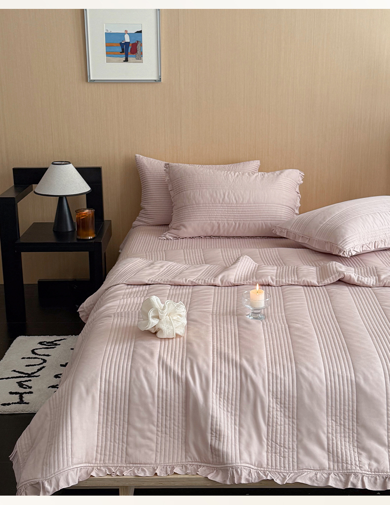 商品名称:漫调家纺 2026新款韩国莫代尔夏被床盖系列-花边款 柔粉