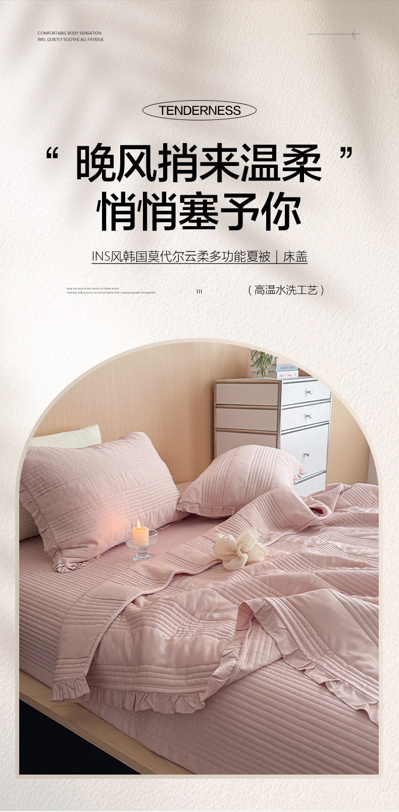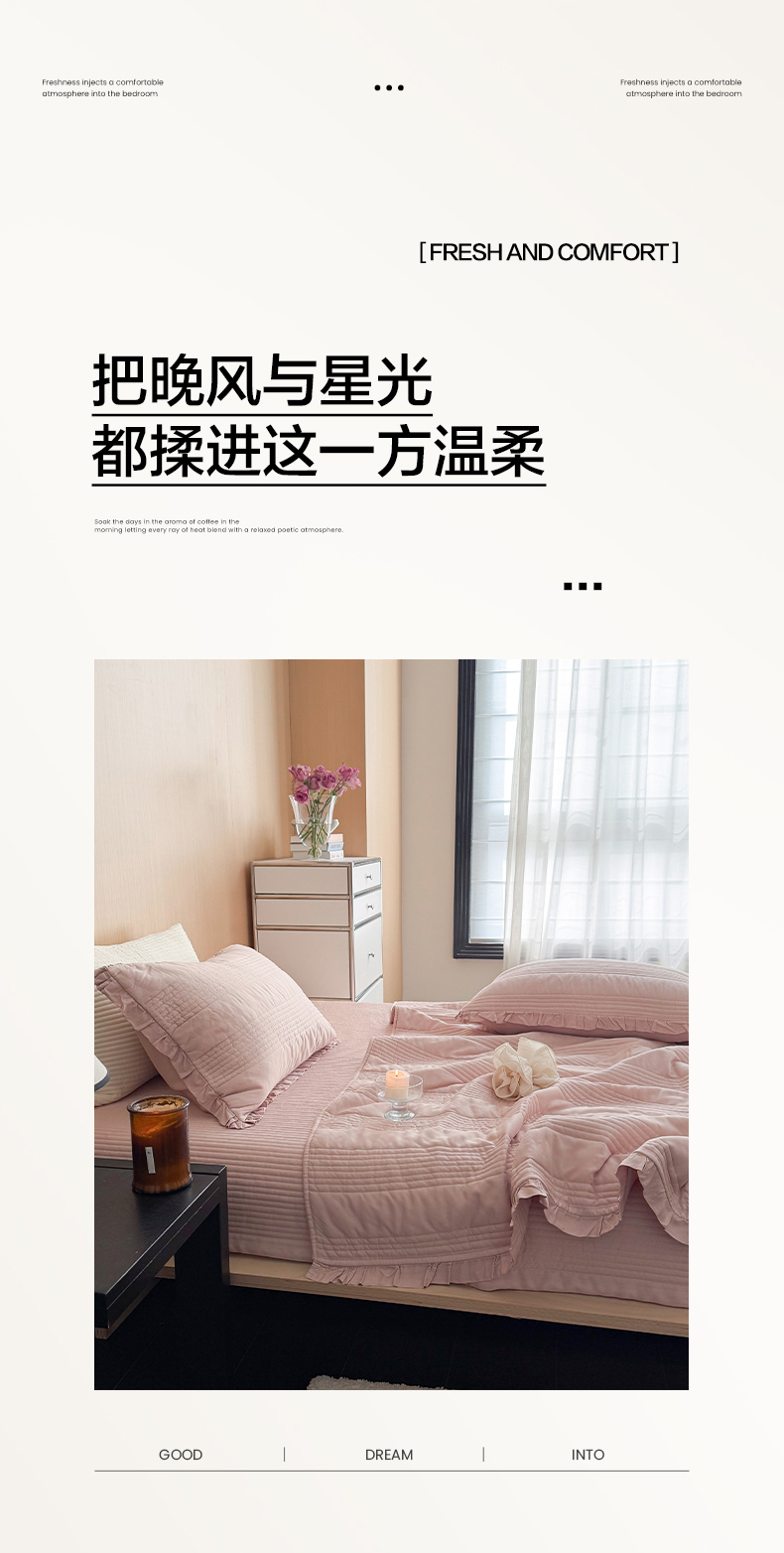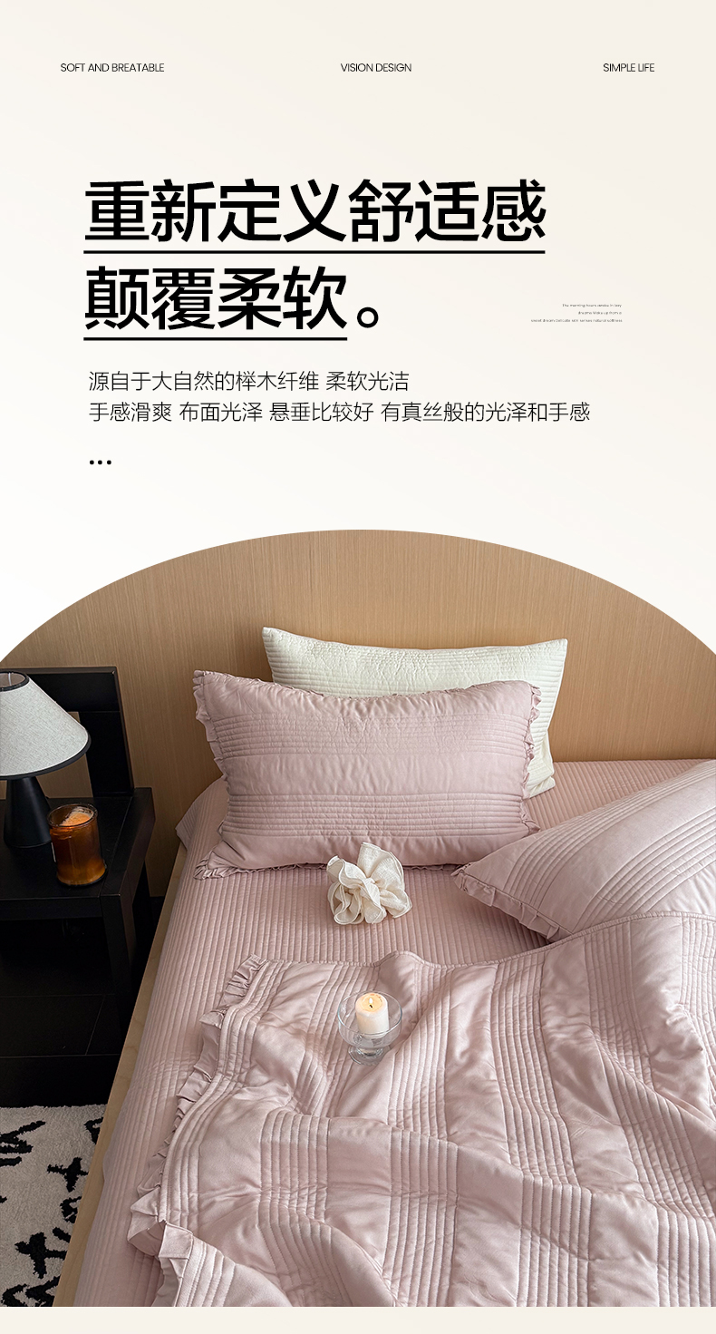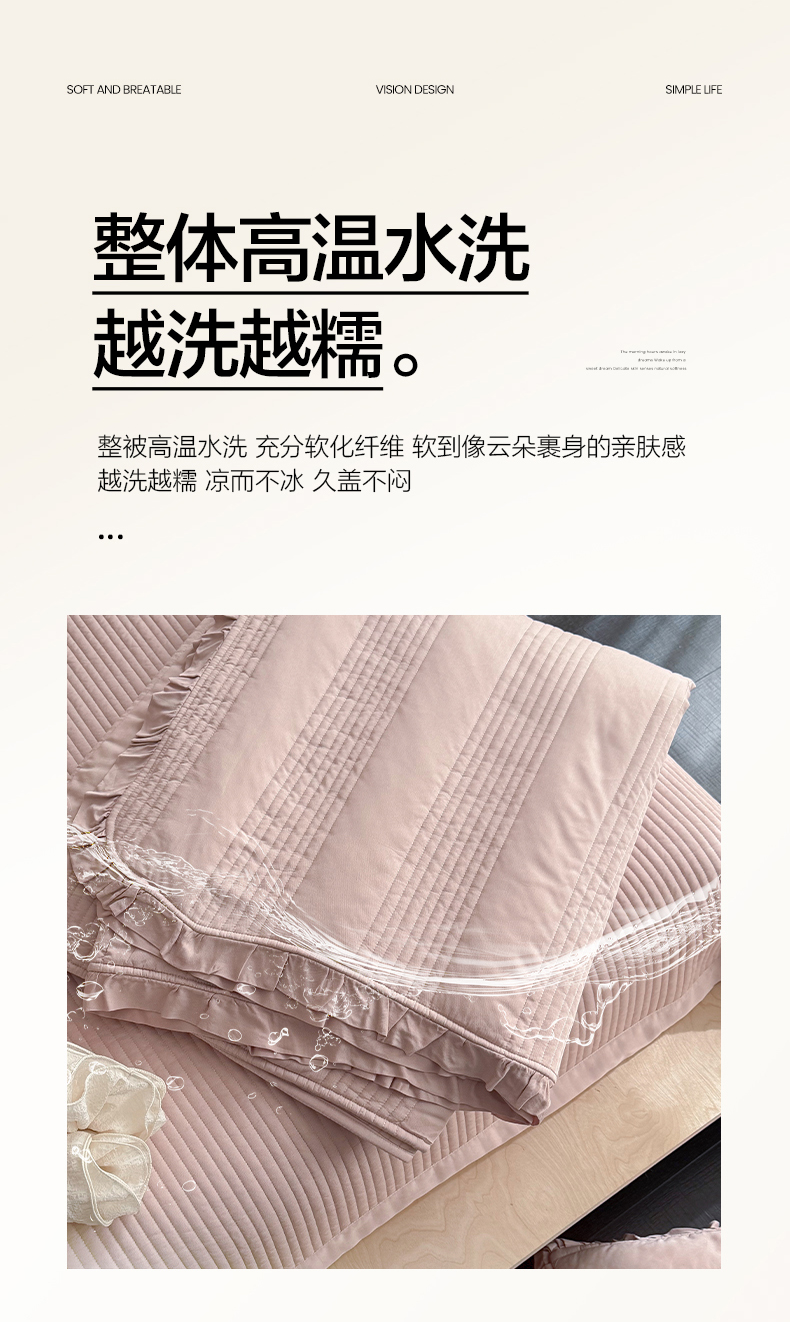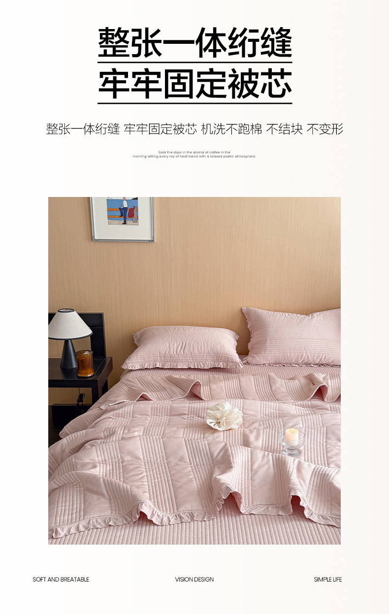 商品名称:漫调家纺 2026新款韩国莫代尔夏被床盖系列-花边款 柔粉