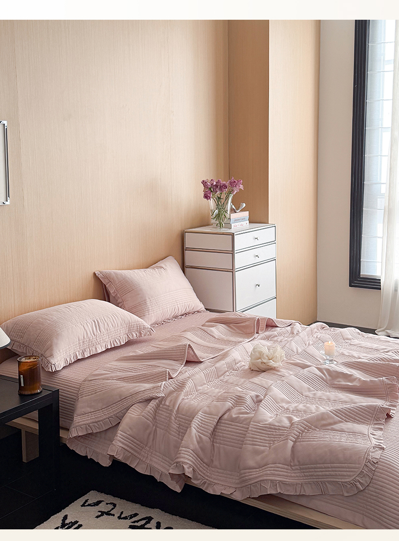 漫调家纺 2026新款韩国莫代尔夏被床盖系列-花边款 柔粉