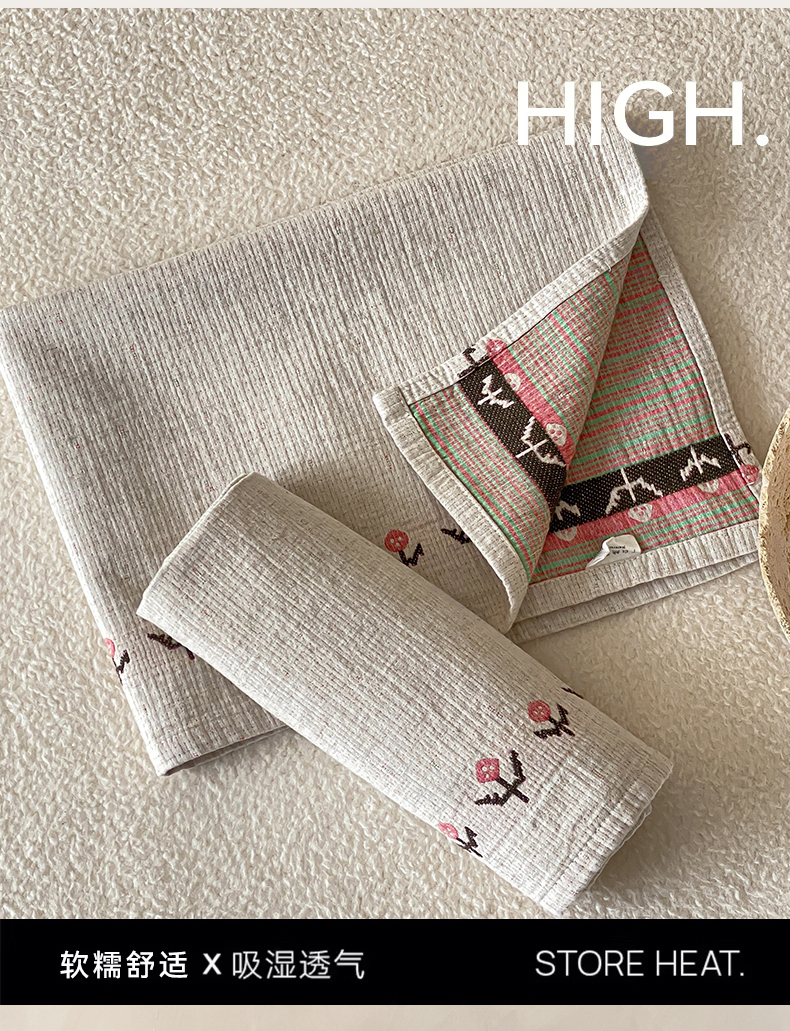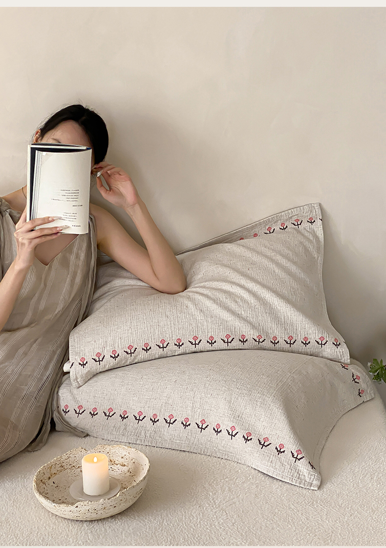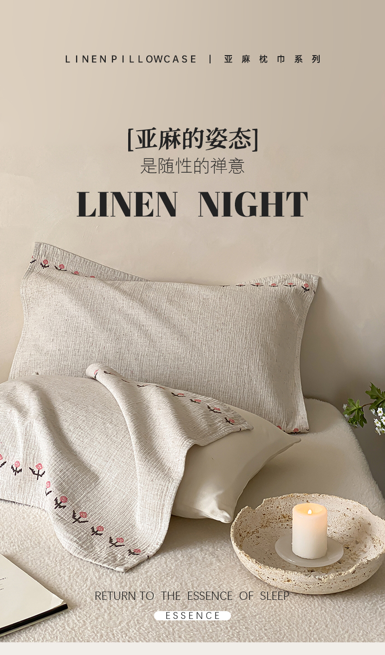 麻依 2026新款四层纱布亚麻枕巾棉麻 风信子
