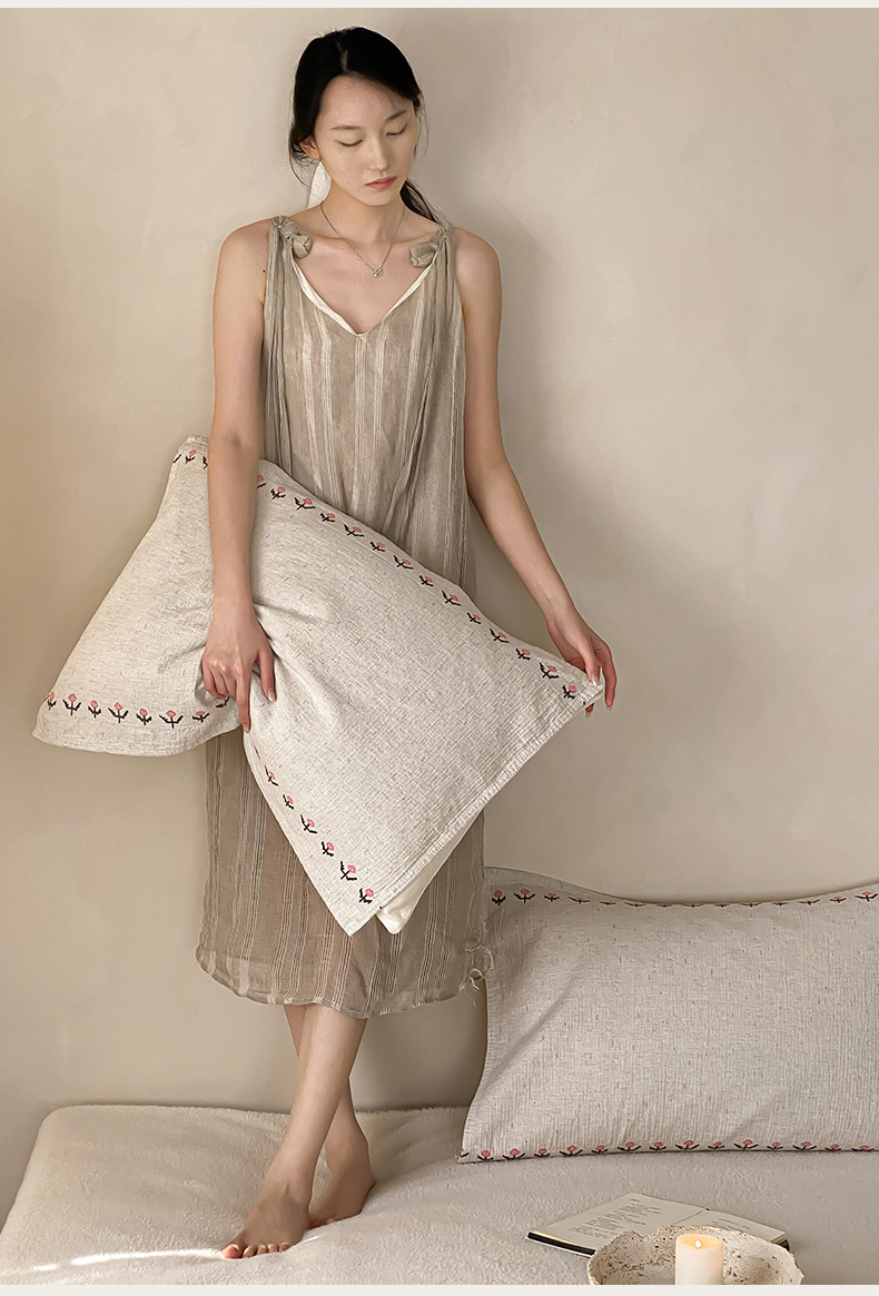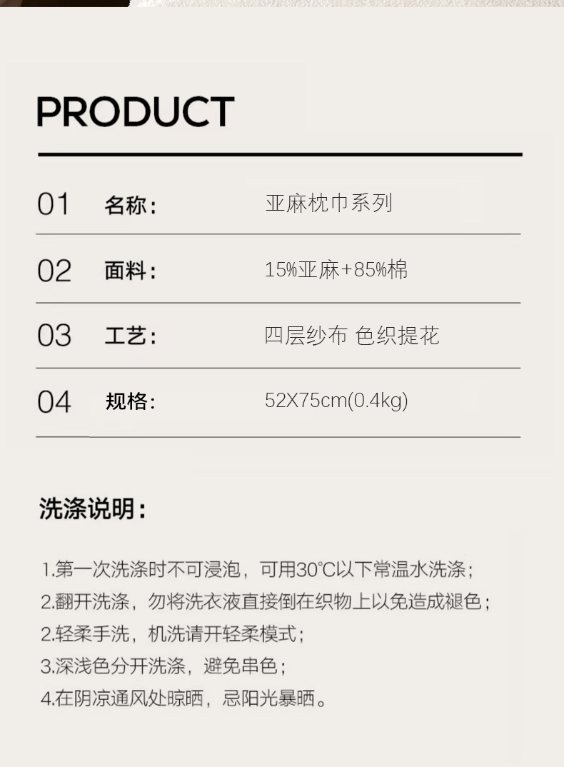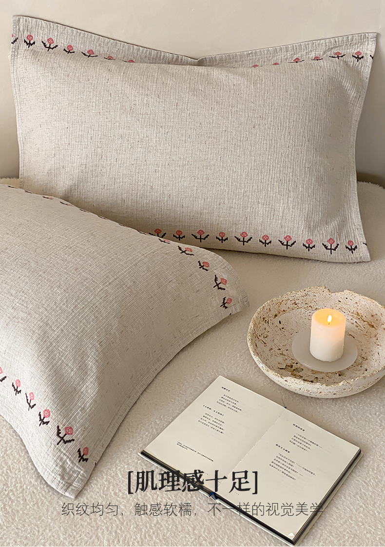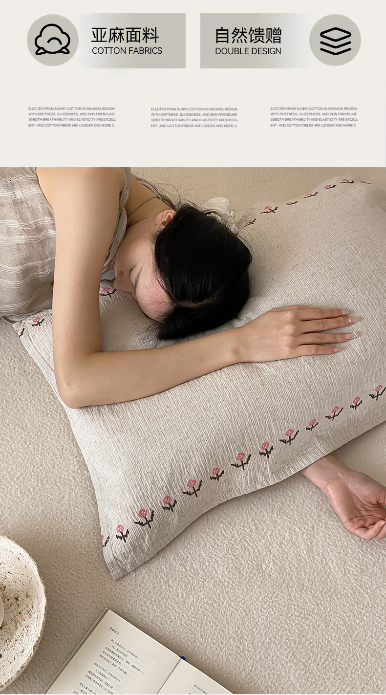 商品名称:麻依 2026新款四层纱布亚麻枕巾棉麻 风信子