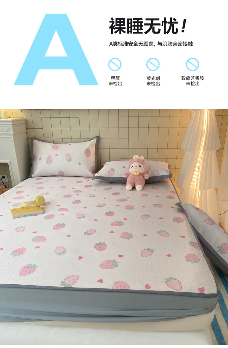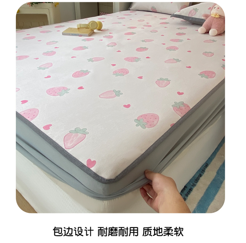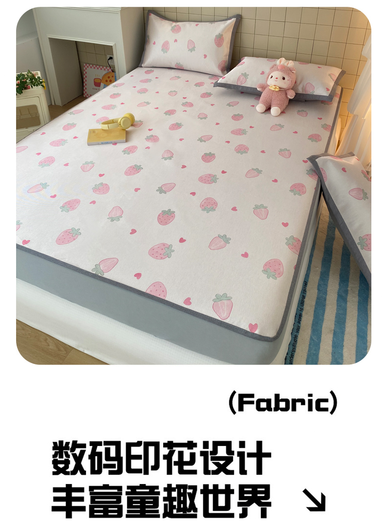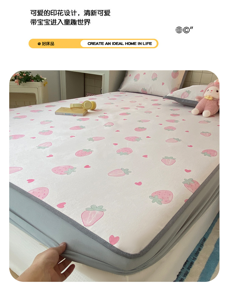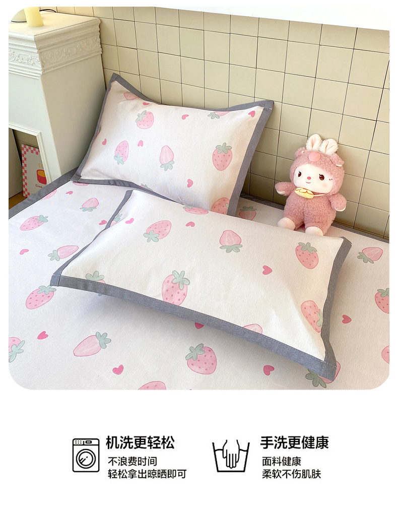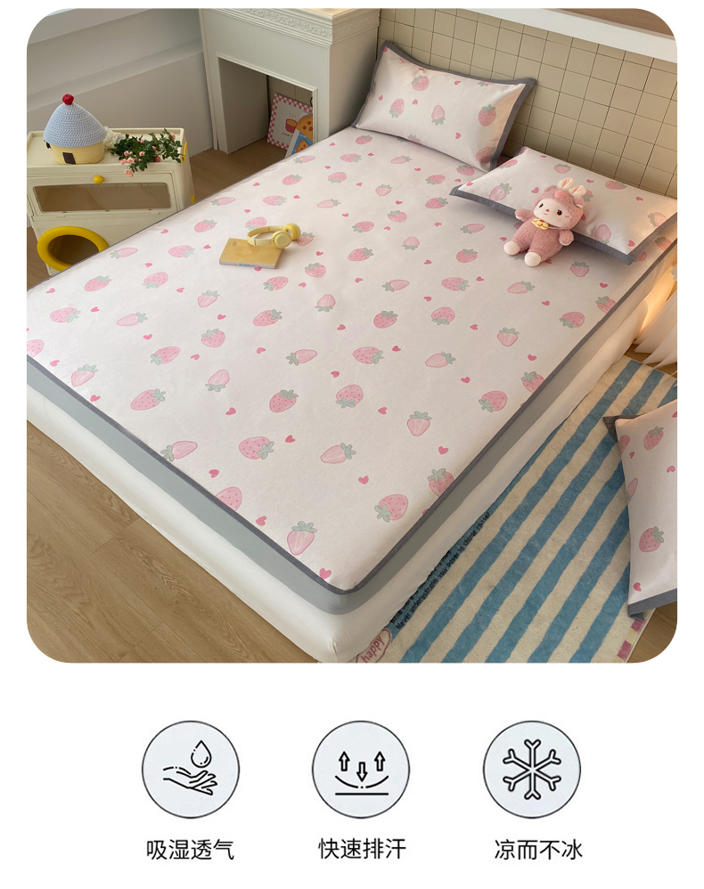 商品名称:金盛纺 2026新款A类数码印花冰丝席(可定制)-床笠款 草莓心