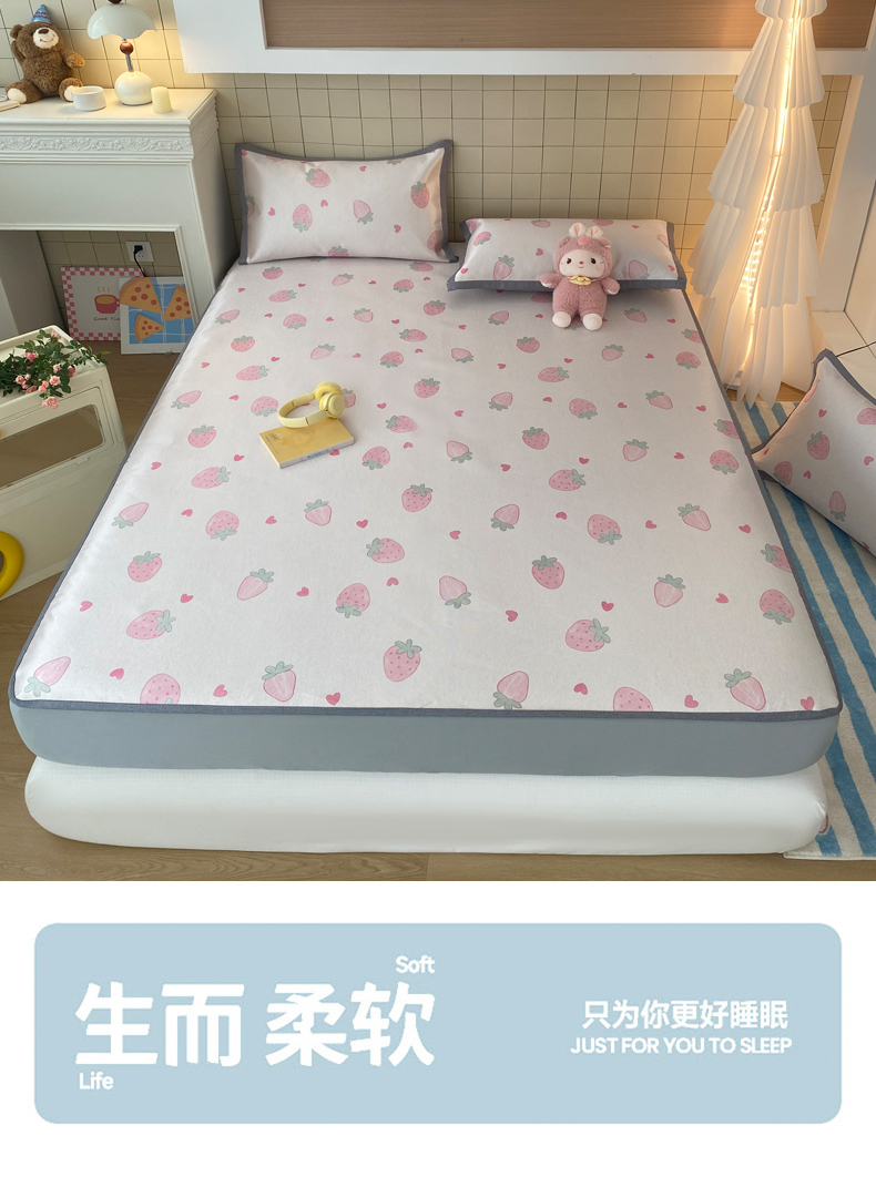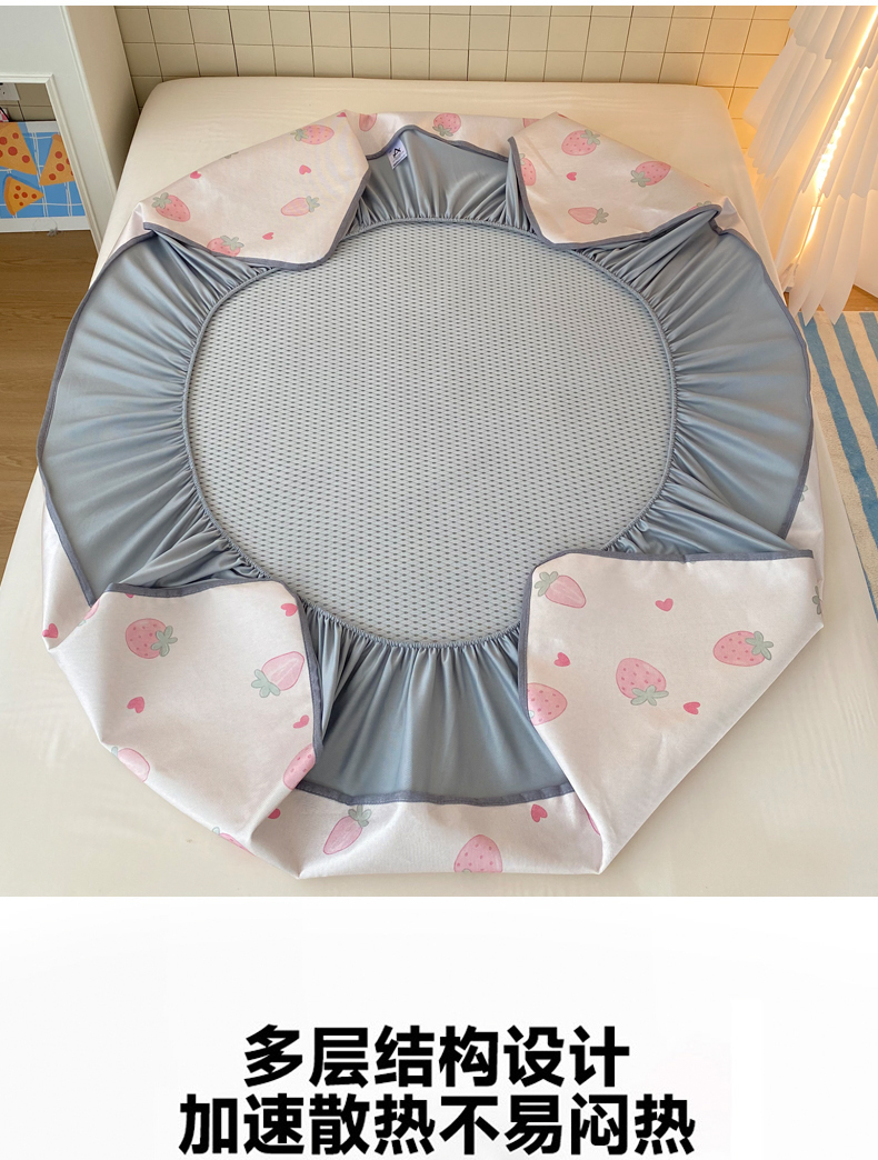 金盛纺 2026新款A类数码印花冰丝席(可定制)-床笠款 草莓心