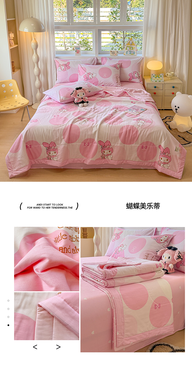 • 91家纺网 家纺一手货源 找家纺 沐辰 2026春夏新款A类三丽鸥蜡笔小新全棉棉花夏被夏凉被空调被 蝴蝶美乐蒂