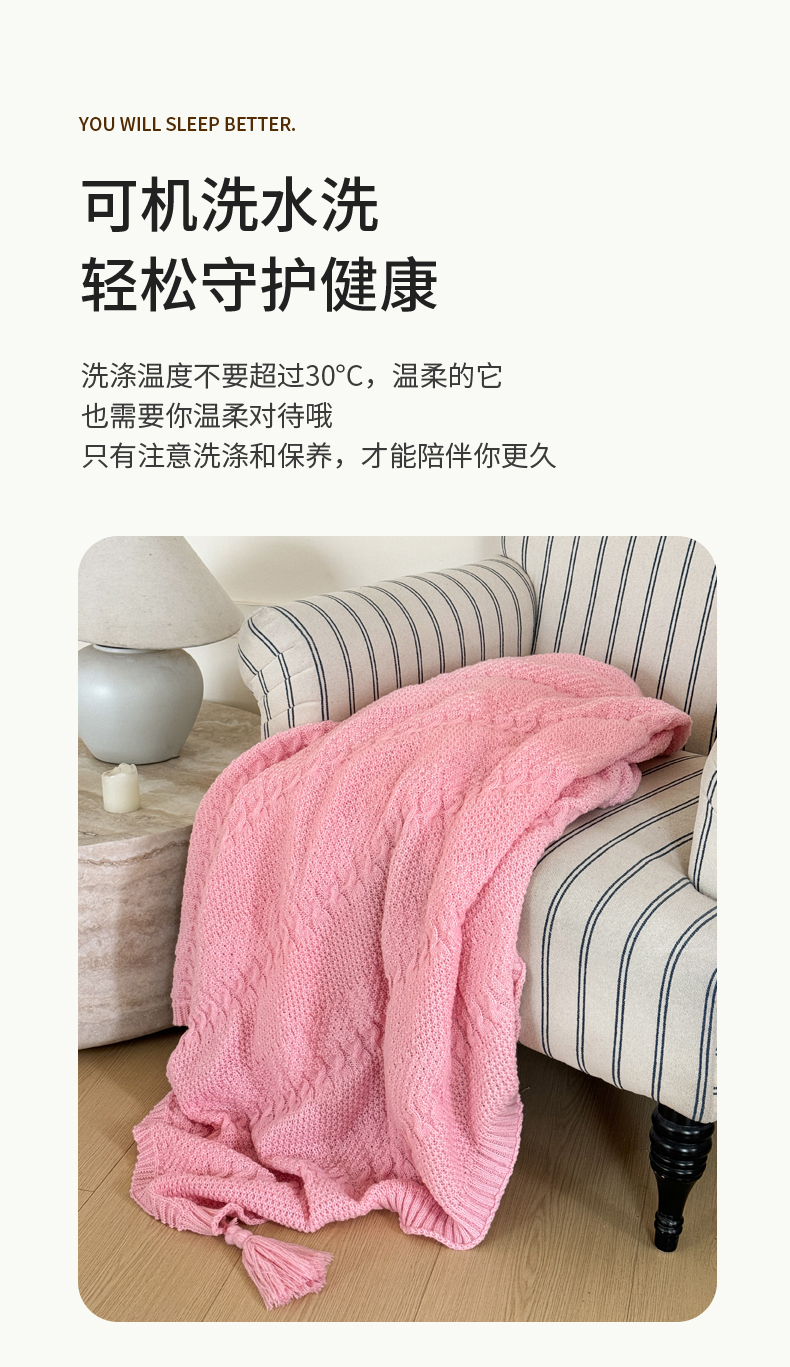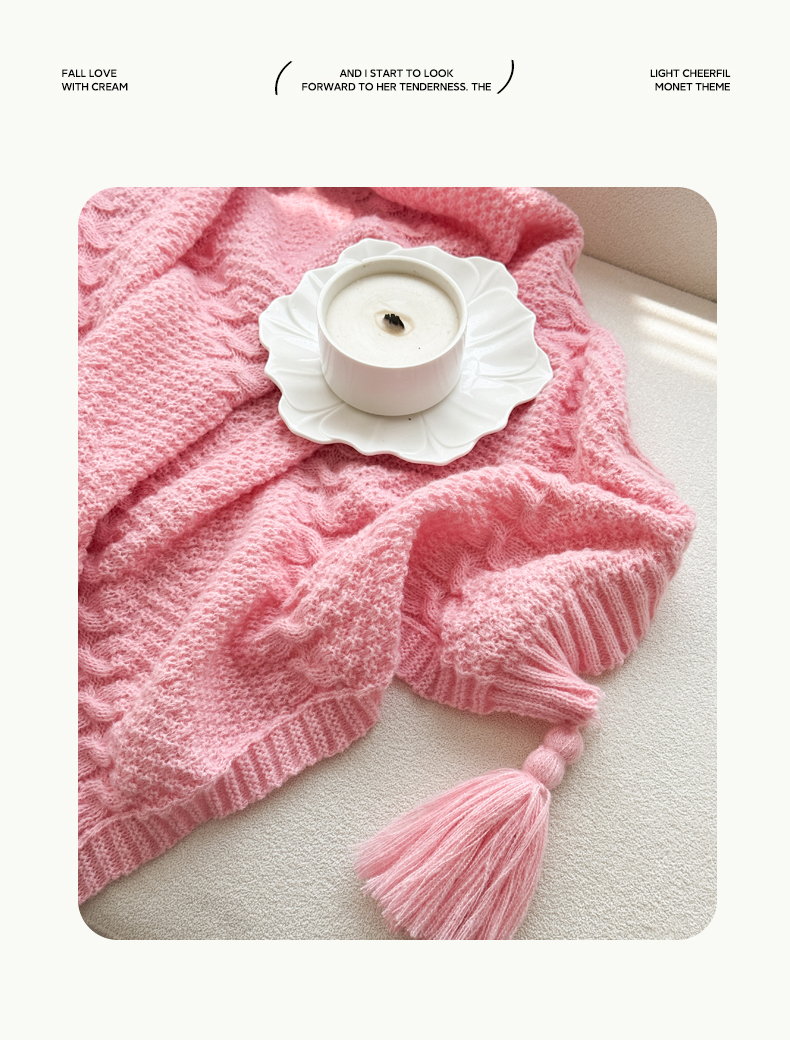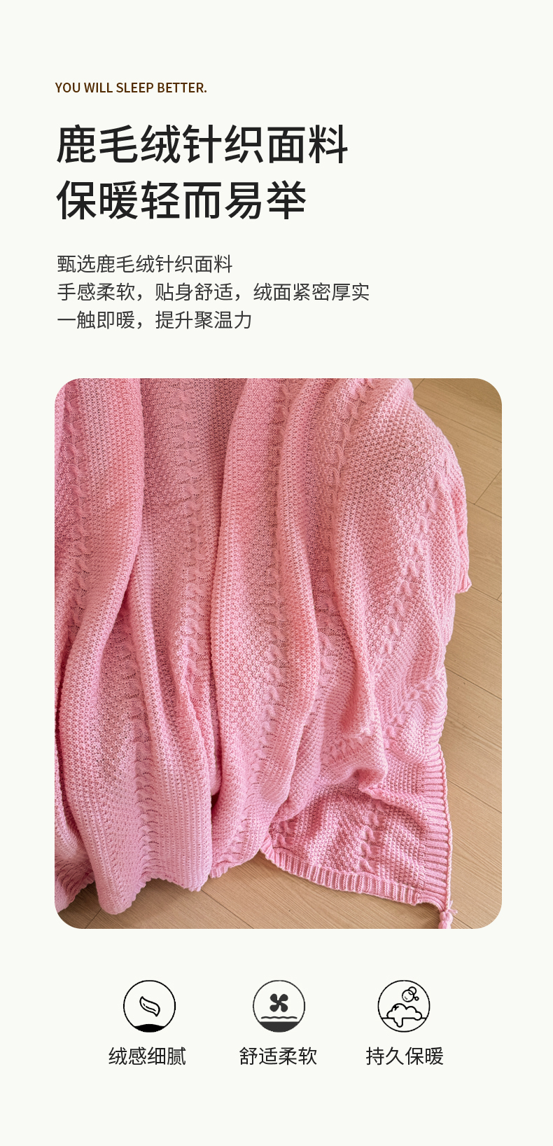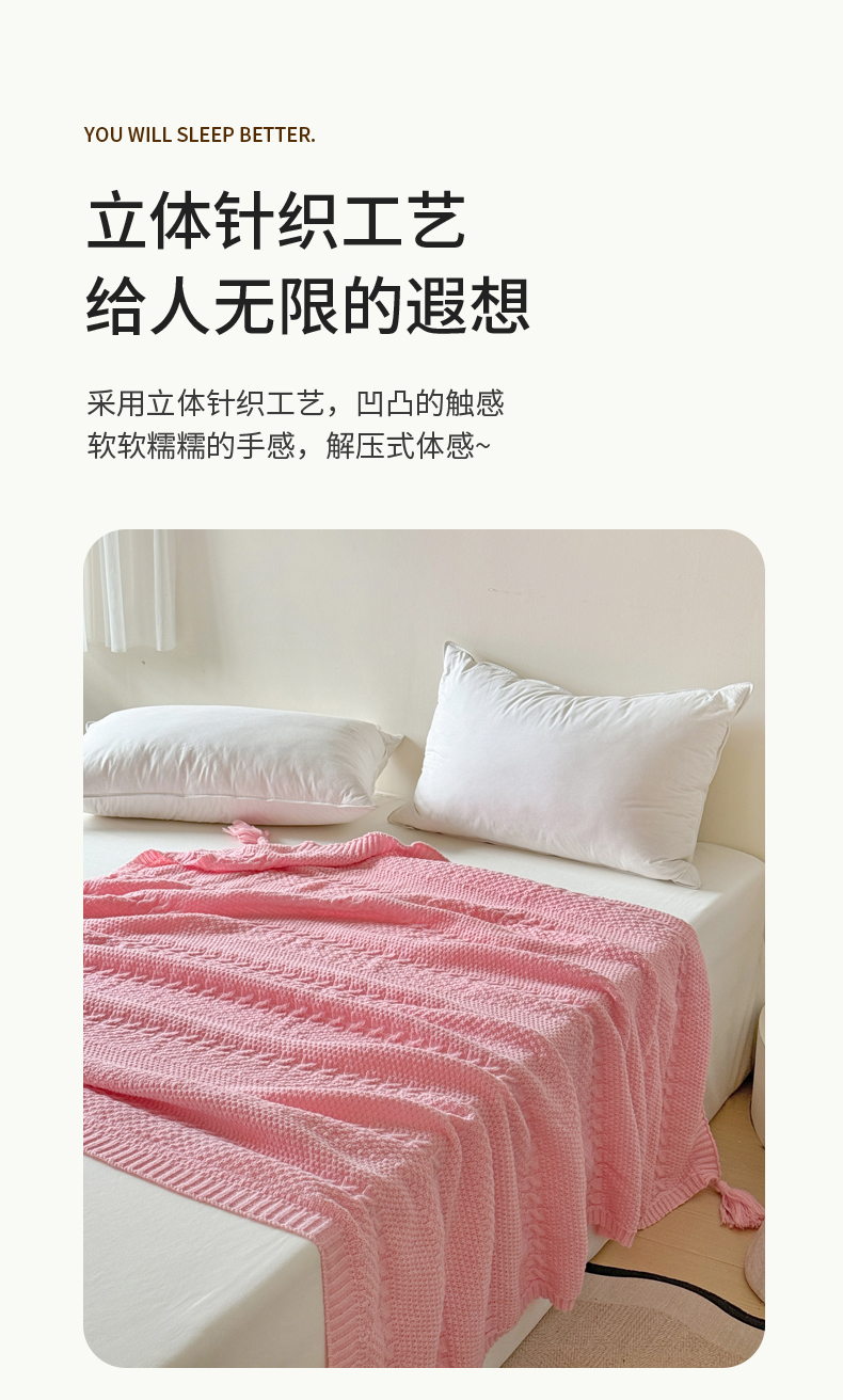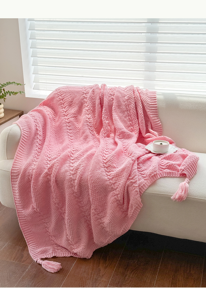 商品名称:丹本家纺 2026新款针织毛毯鹿毛绒纯色流苏航空休闲毯办公午睡盖毯多功能装饰毯 玫瑰粉