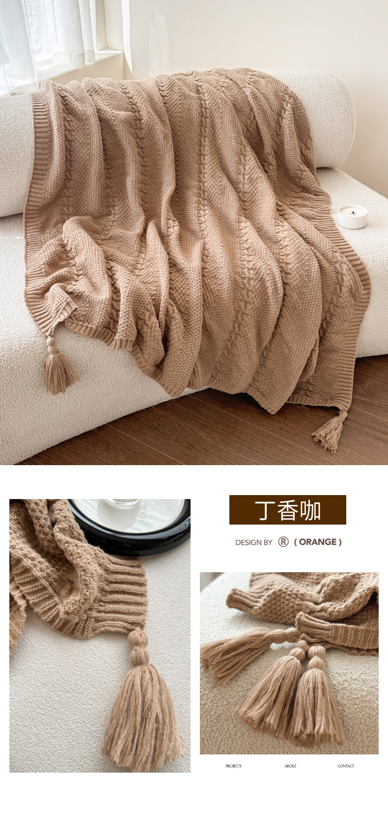 (总)丹本家纺 2026新款针织毛毯鹿毛绒纯色流苏航空休闲毯办公午睡盖毯多功能装饰毯,组合图仅供展示不可下单,丁香咖,玫瑰粉,驼棕,香槟金,烟墨灰