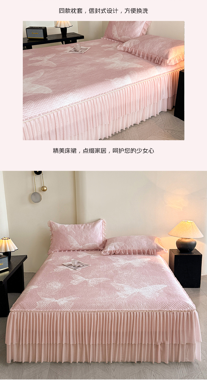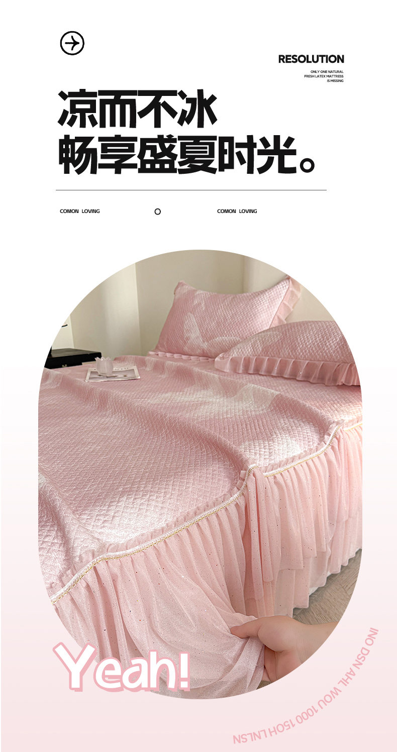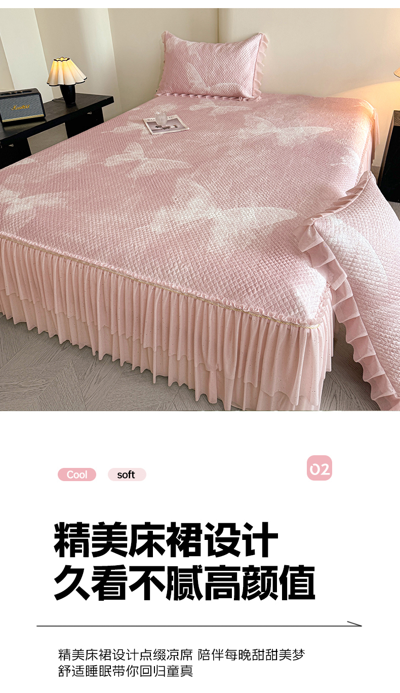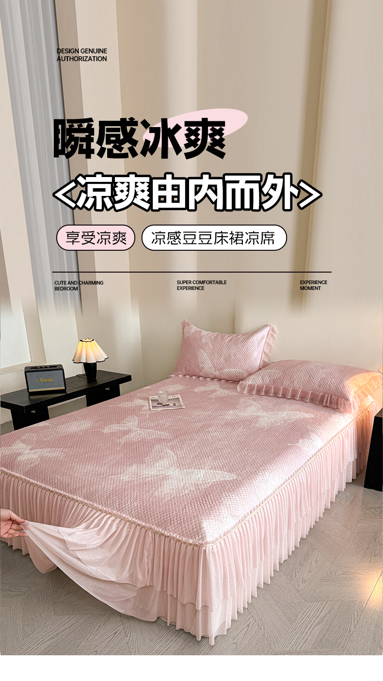 商品名称:诺梵家纺 2026新款冰豆豆PE高分子凉感双层床裙款凉席 蝶影-粉