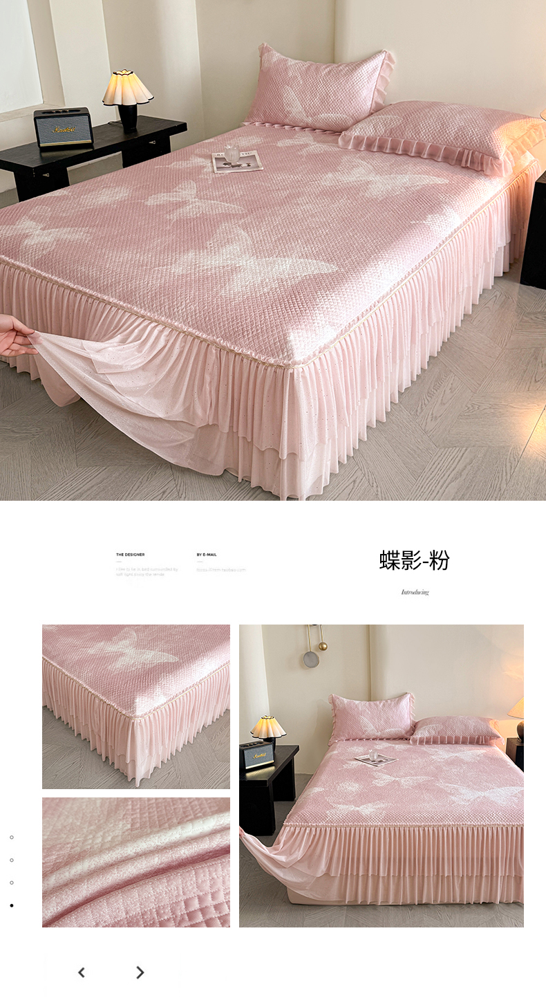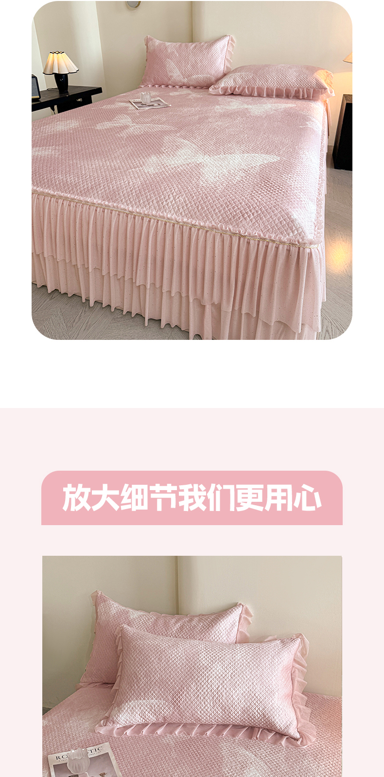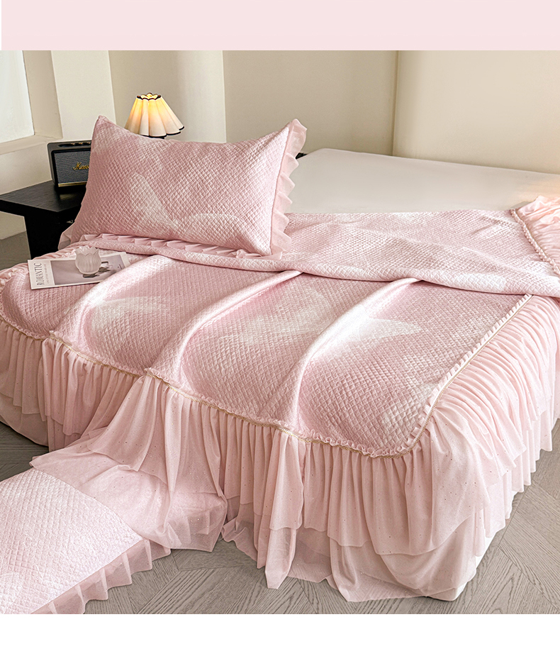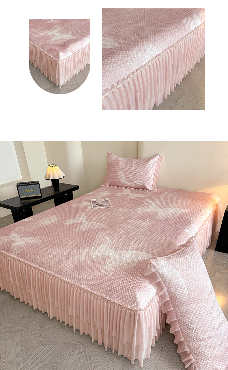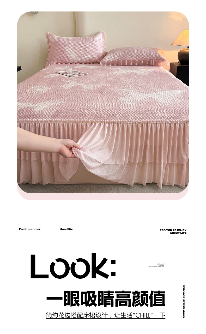 商品名称:诺梵家纺 2026新款冰豆豆PE高分子凉感双层床裙款凉席 蝶影-粉