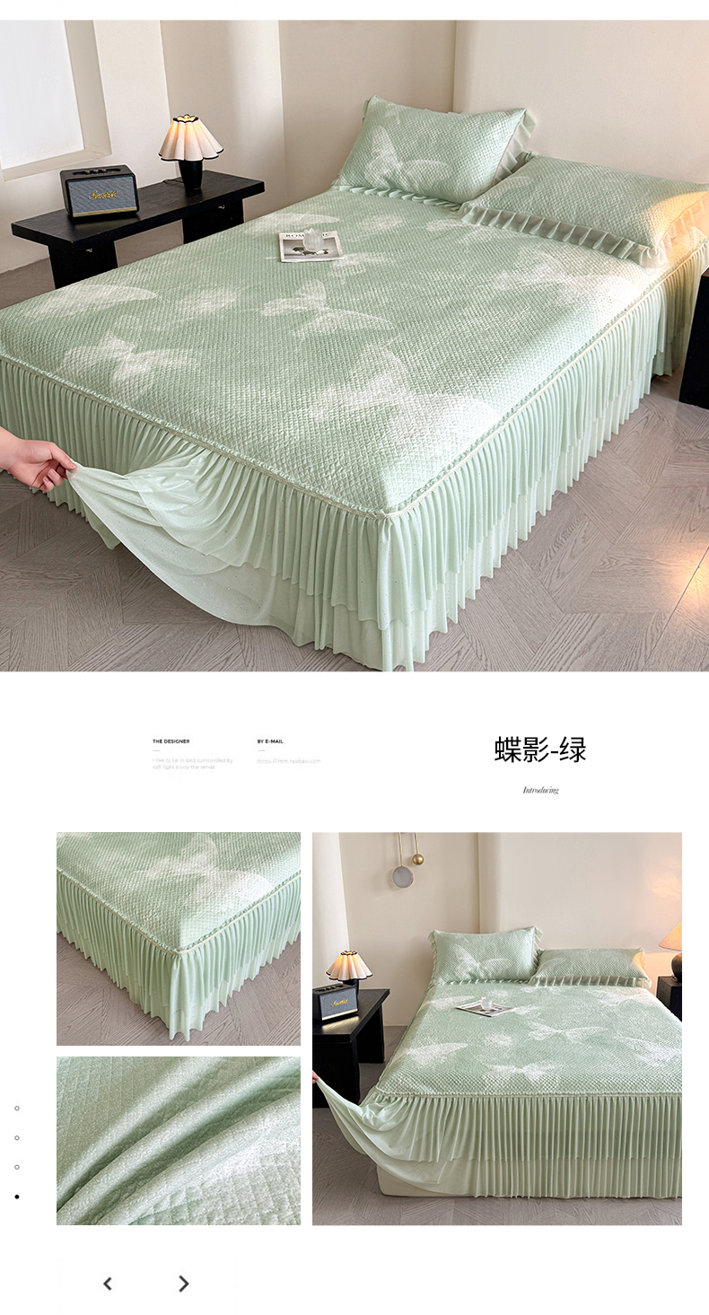 (总)诺梵家纺 2026新款冰豆豆PE高分子凉感双层床裙款凉席,蝶影-灰,蝶影-粉,蝶影-蓝,蝶影-绿