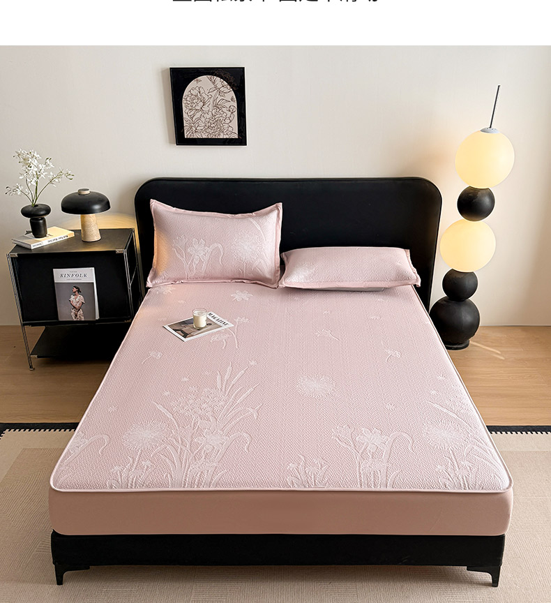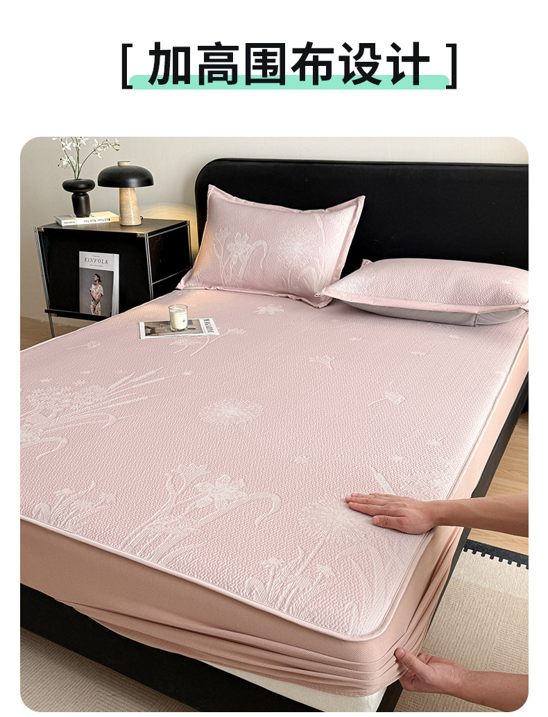 鑫琪莱家纺 2026新款提花浮雕凉豆豆凉感凉席床笠款 蒲公英粉