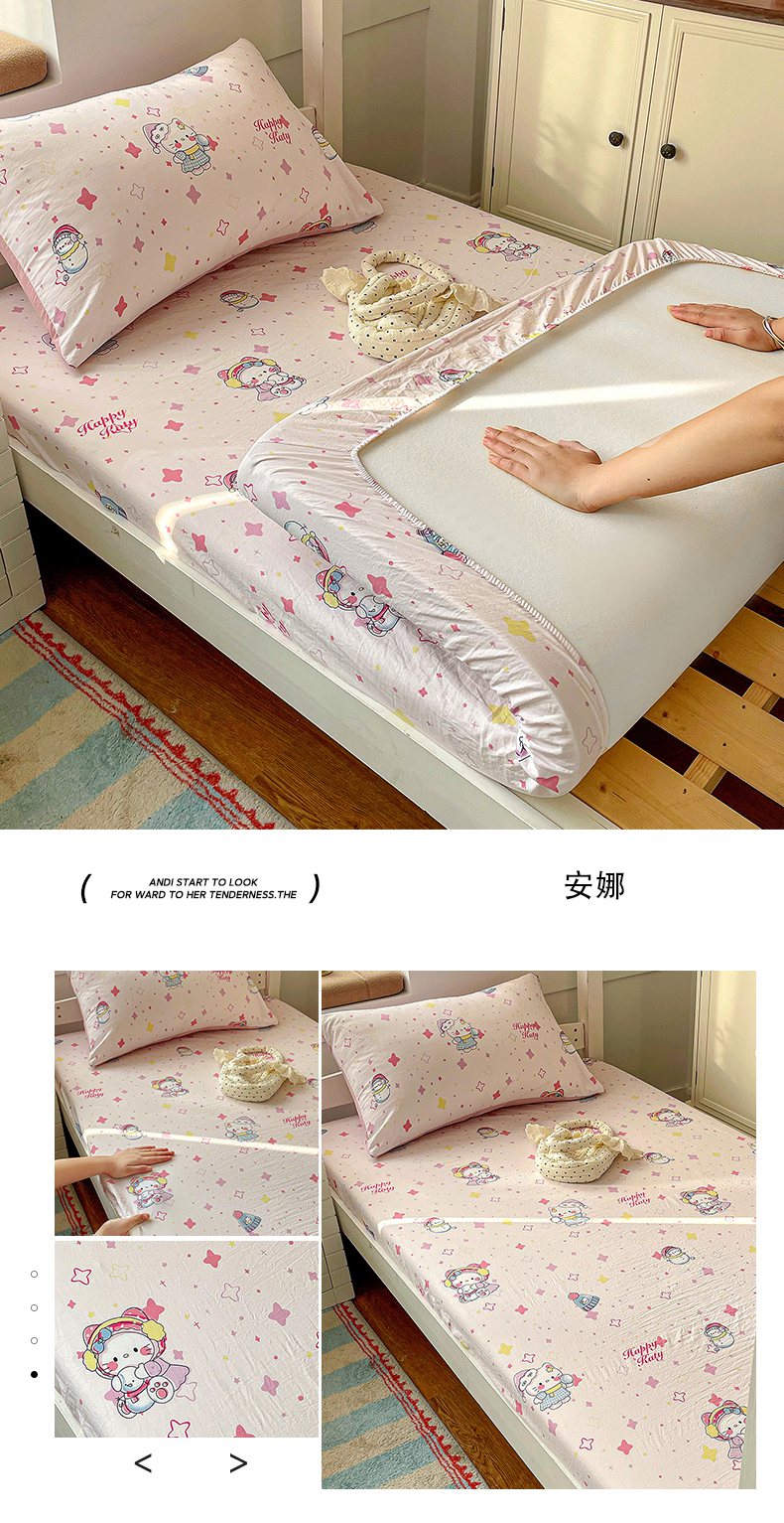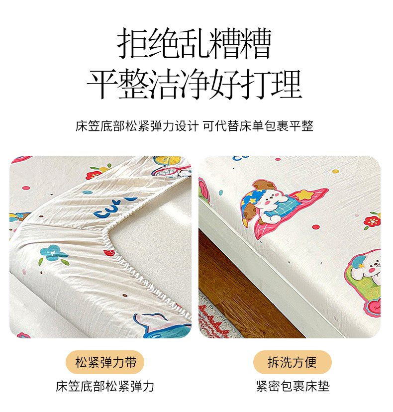 • 91家纺网 家纺一手货源 找家纺 纽缦家纺 2026新款A类105g仿棉四件套古法水洗棉学生单床笠 洛奇