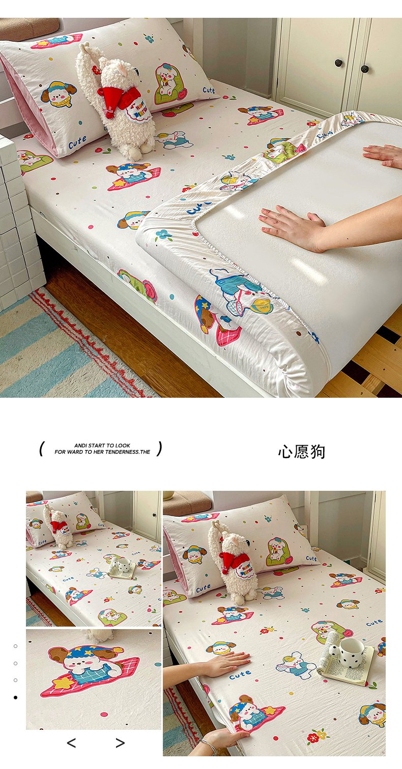 纽缦家纺 2026新款A类105g仿棉四件套古法水洗棉学生单床笠 洛奇