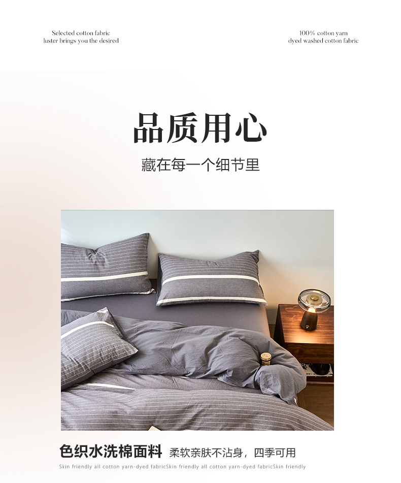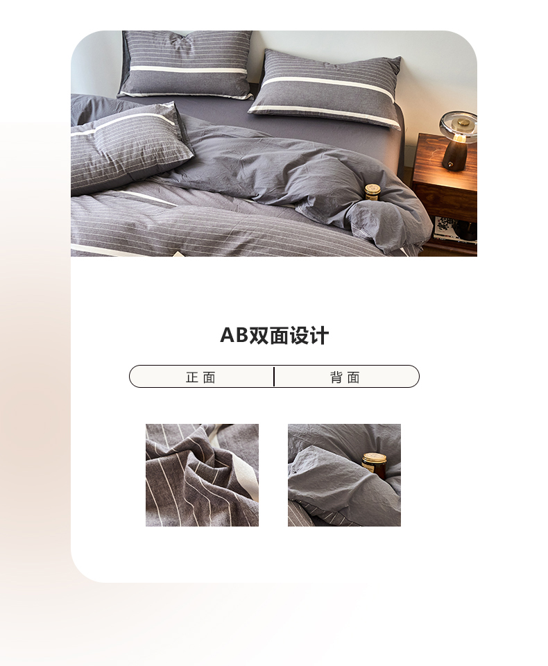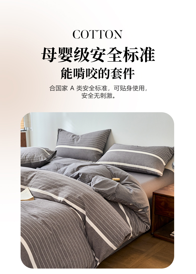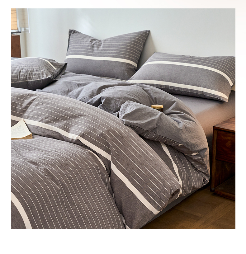 当前位置: 91家纺网 > 商品网购 > 床品套件 > 四件套 > 全棉普通四件套 > 春皖家纺 2026春夏新款全棉纯棉水洗棉四件套 素雅-灰条