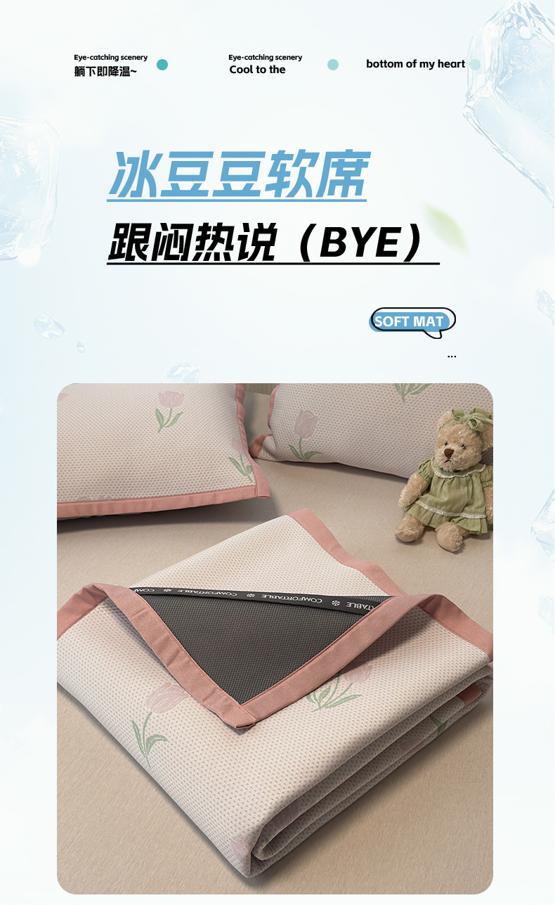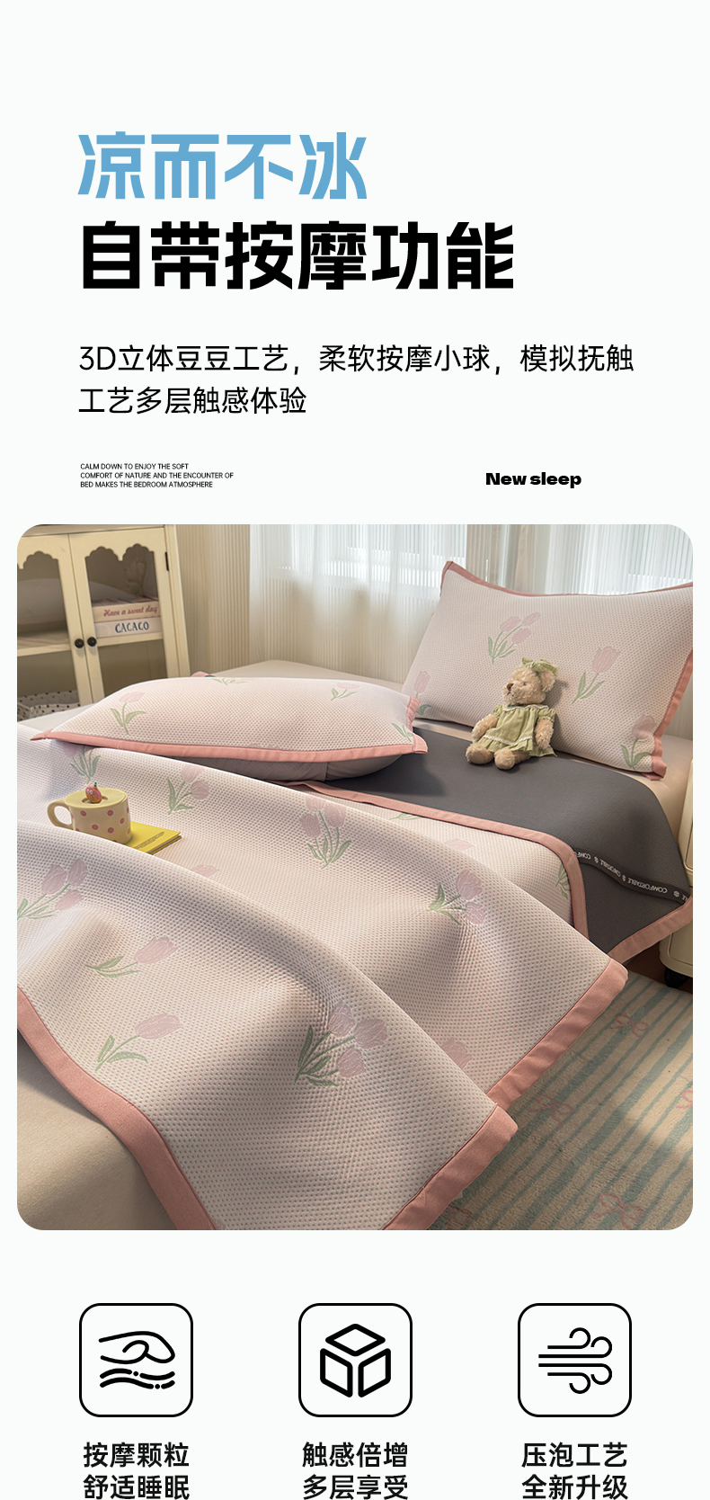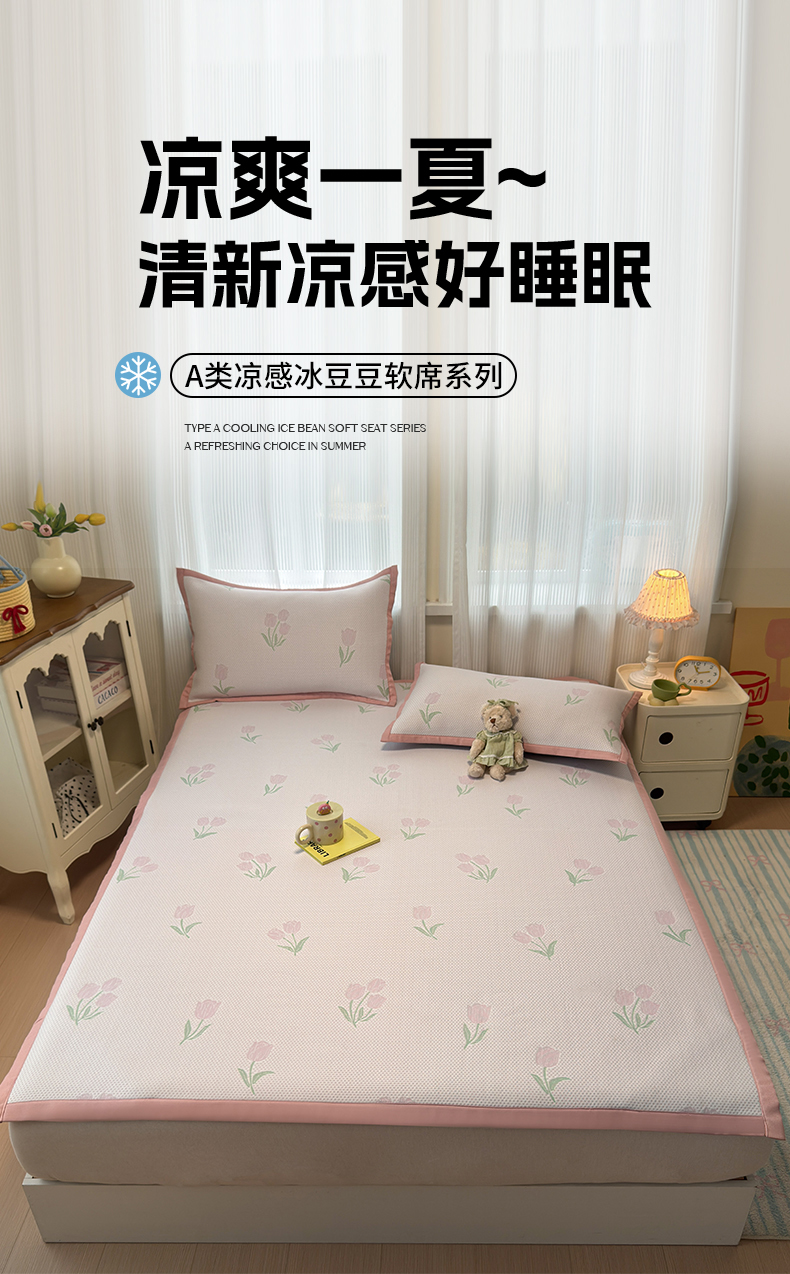 亿梵家居 2026春夏新款冰豆豆PE高分子凉席 花间梦-粉