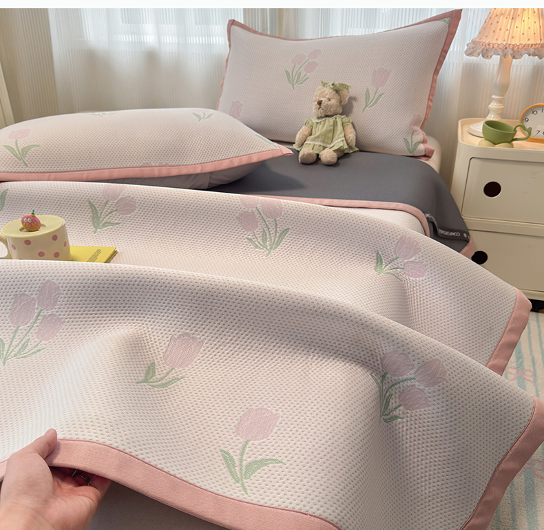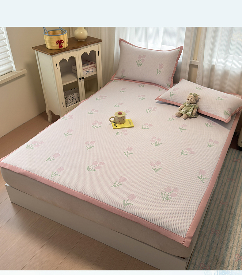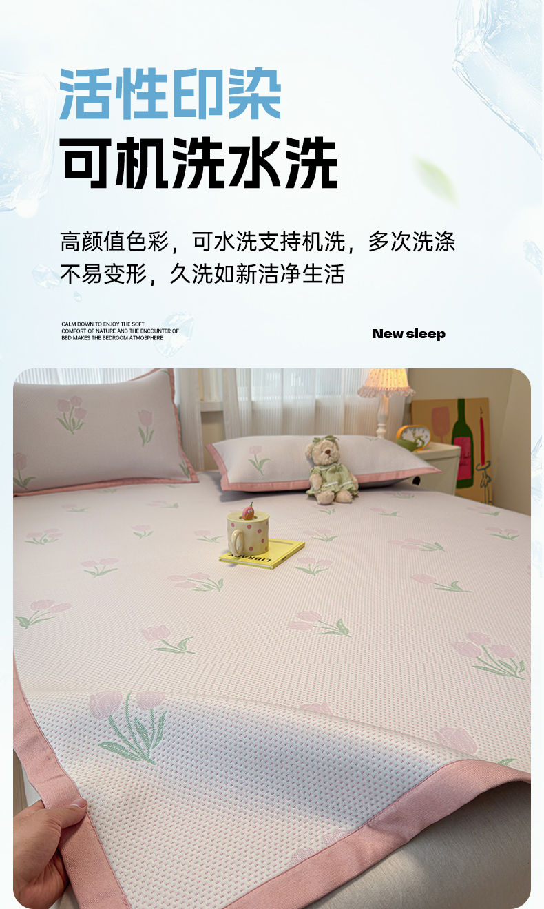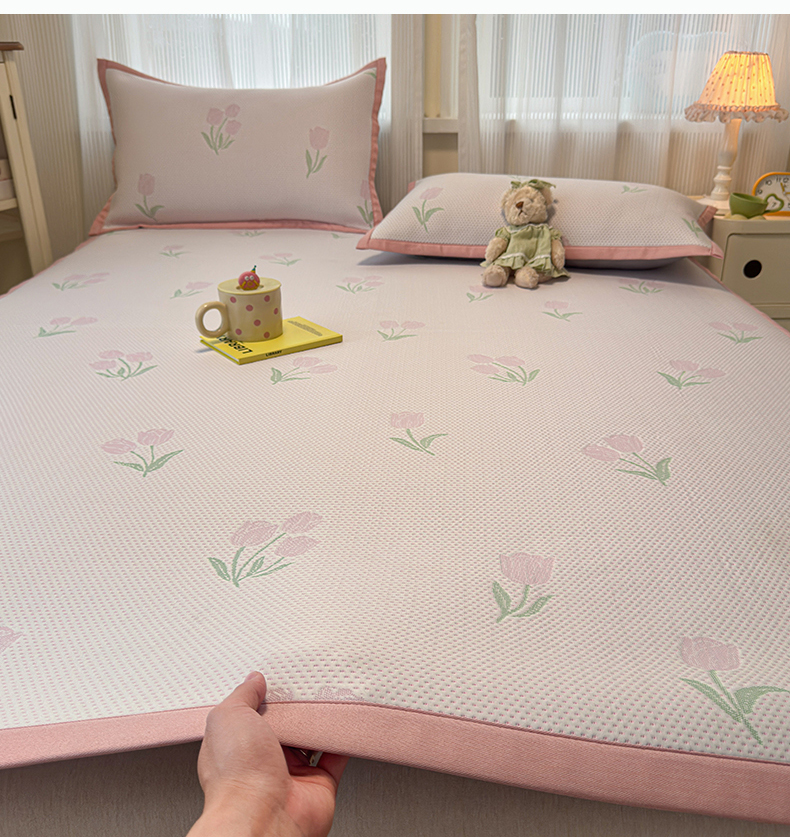 亿梵家居 2026春夏新款冰豆豆PE高分子凉席 花间梦-粉