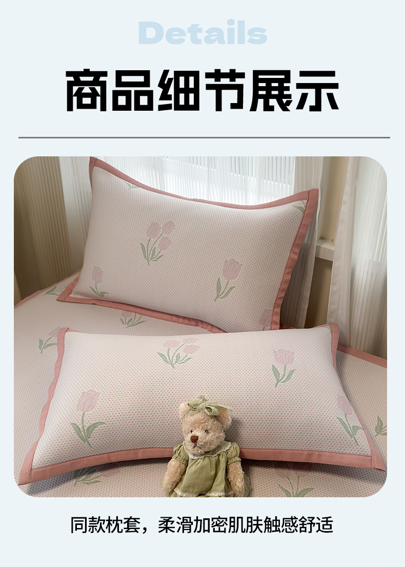 商品名称:亿梵家居 2026春夏新款冰豆豆PE高分子凉席 花间梦-粉
