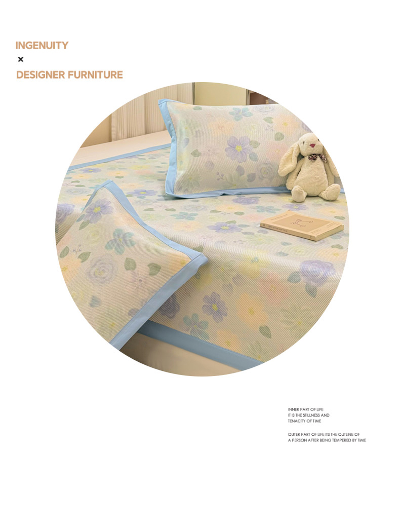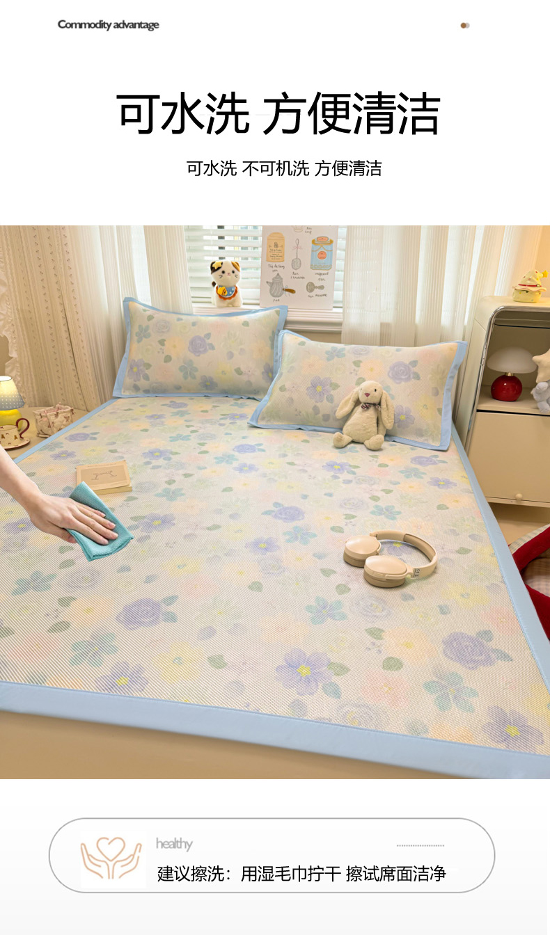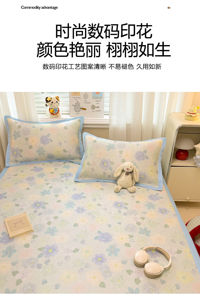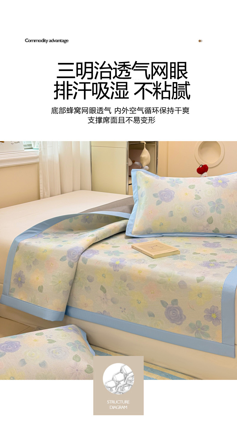 商品名称:慕尚家纺 2026新款清新凉感冰藤席床笠款 碎冰蓝