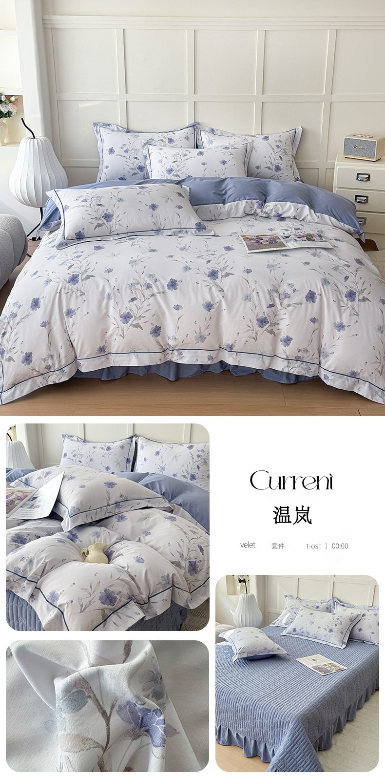 (总)星光耀 2026新款A类高克重斜纹云柔棉床盖四件套,茶礼·远山紫,茶礼·梅子红,边庭,禅弥,花棠,岚语