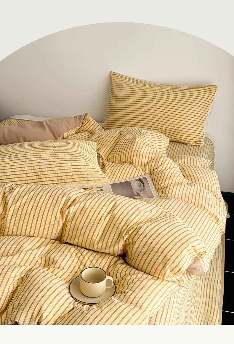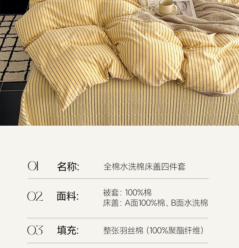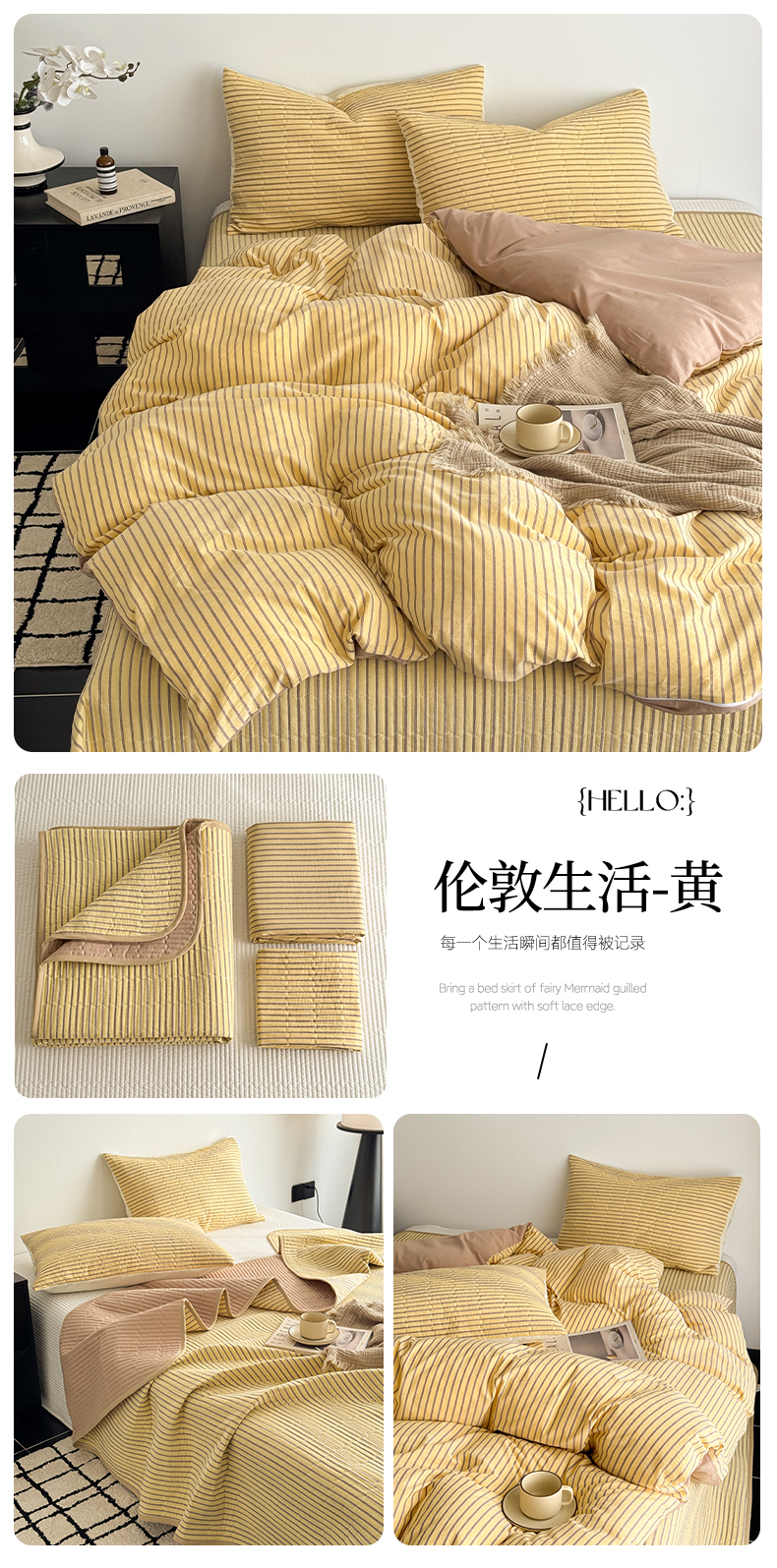 当前位置: 91家纺网 > 商品网购 > 床品套件 > 四件套 > 全棉普通四件套 > 妮可 2026新款全棉色织水洗棉床盖四件套-伦敦生活系列 伦敦生活-黄