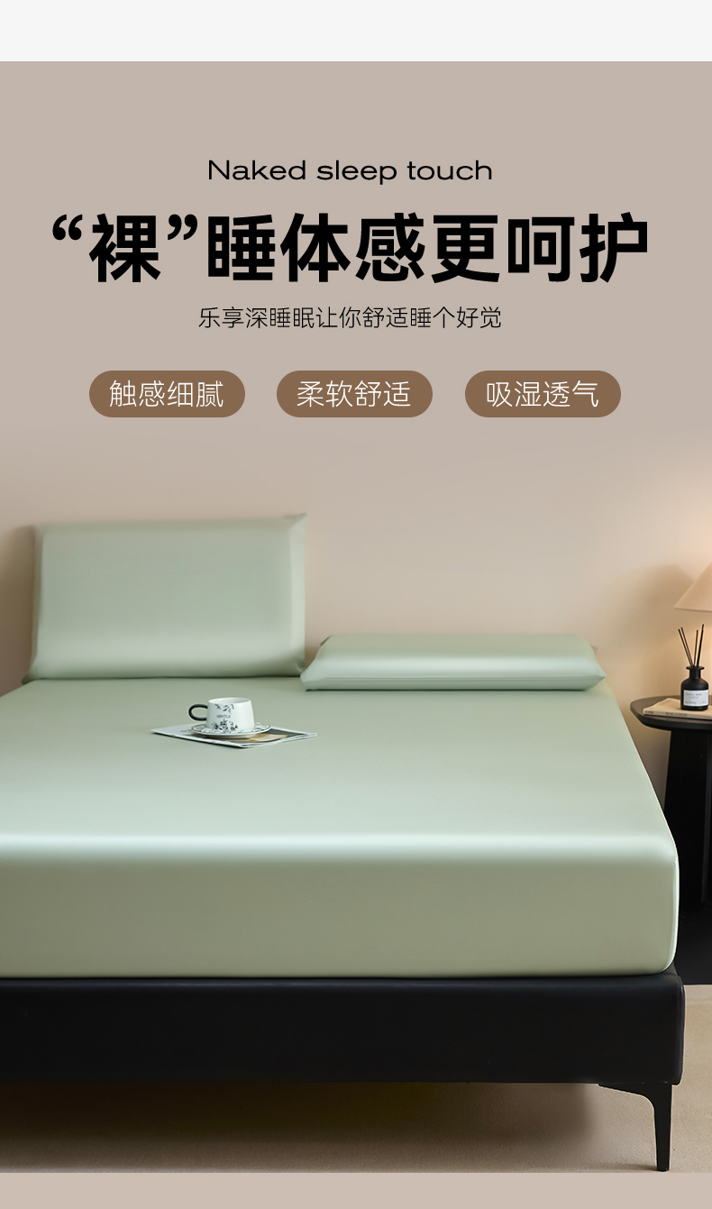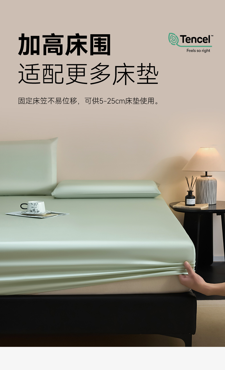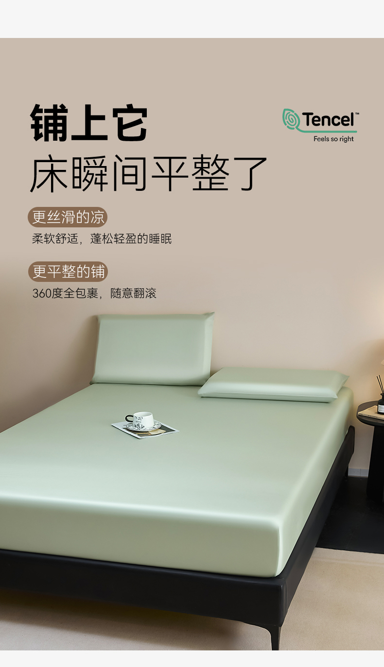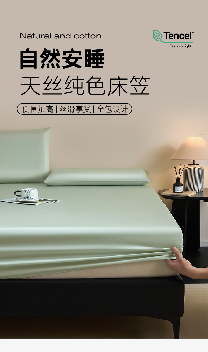 DC 2026新款莱赛尔天丝纯色单品床笠 亚丁绿