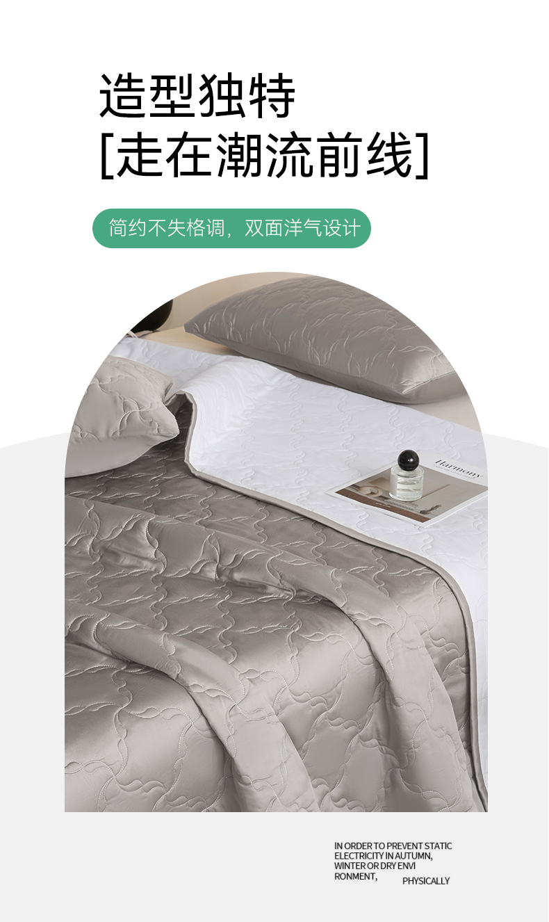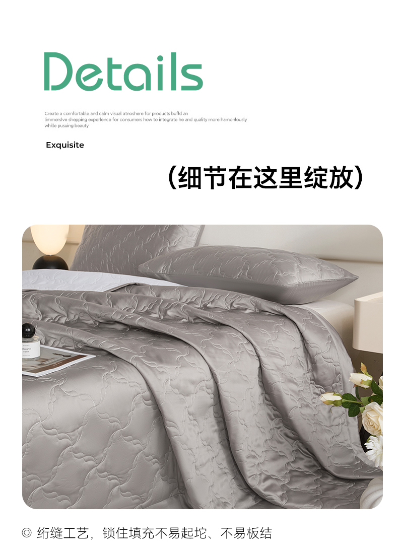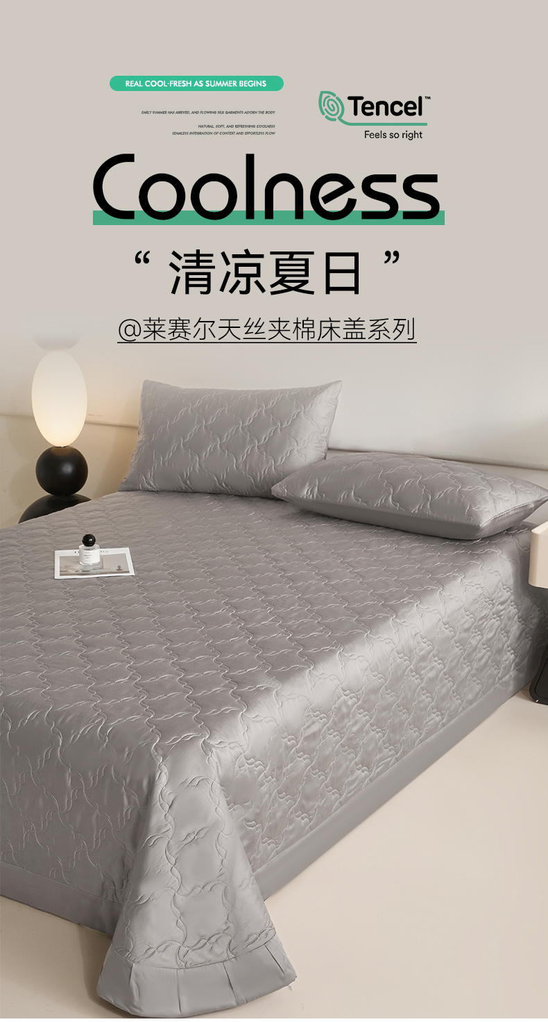 商品名称:DC 2026新款莱赛尔天丝夹棉螺旋方格绗缝单品床盖 经典灰