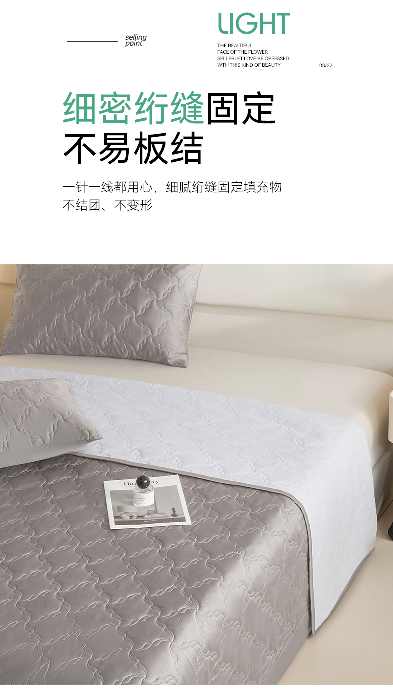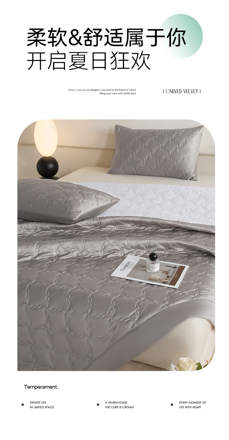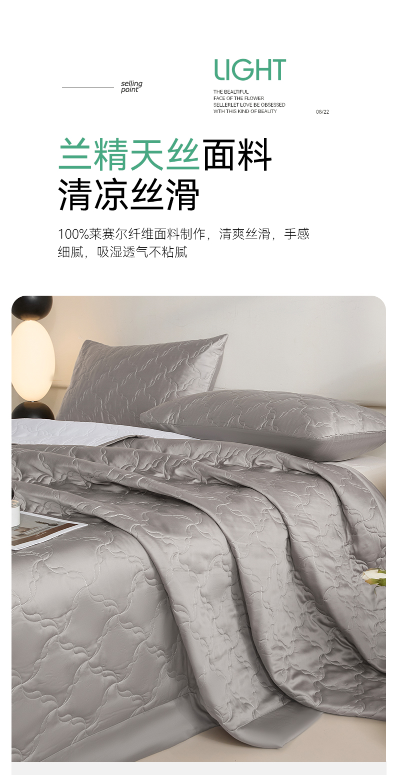 商品名称:DC 2026新款莱赛尔天丝夹棉螺旋方格绗缝单品床盖 经典灰