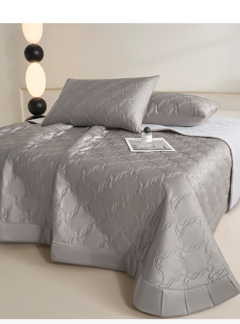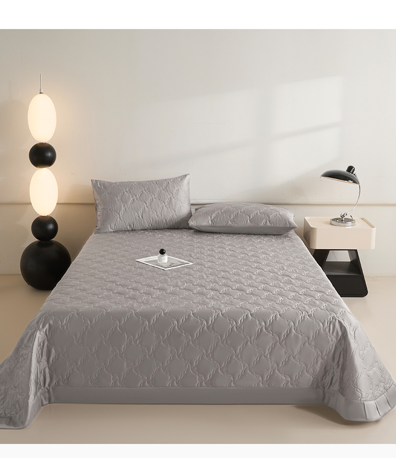 DC 2026新款莱赛尔天丝夹棉螺旋方格绗缝单品床盖 经典灰