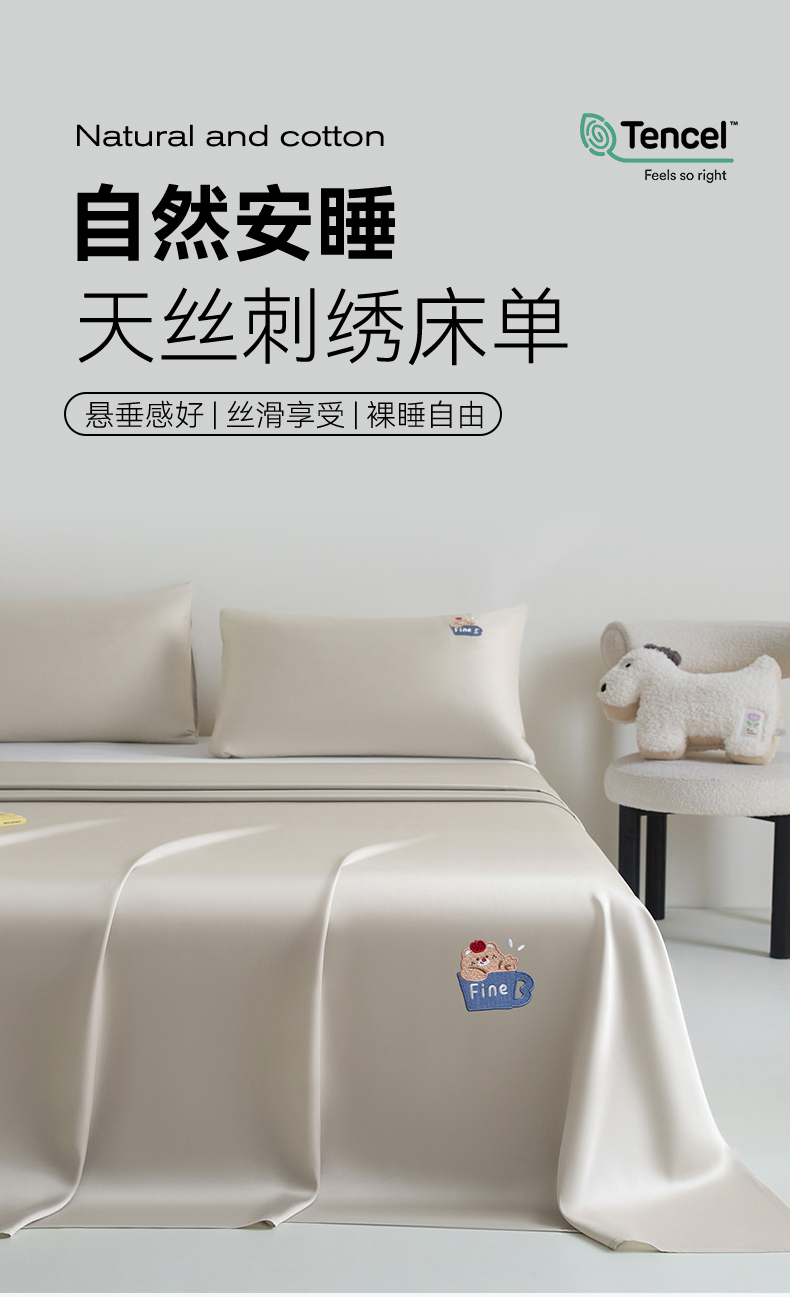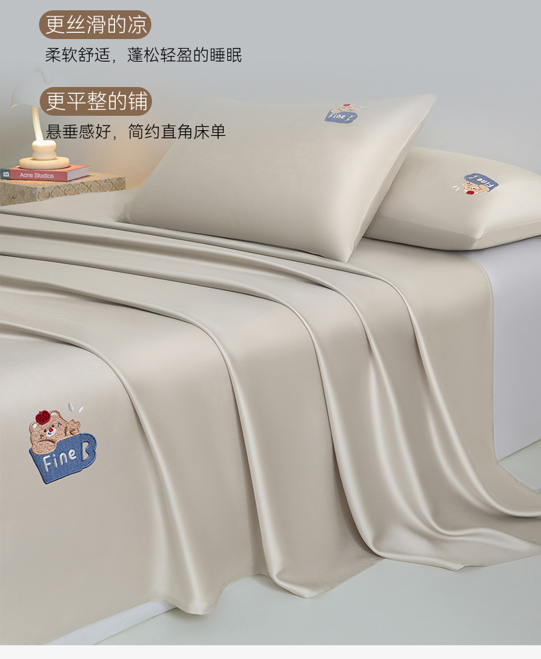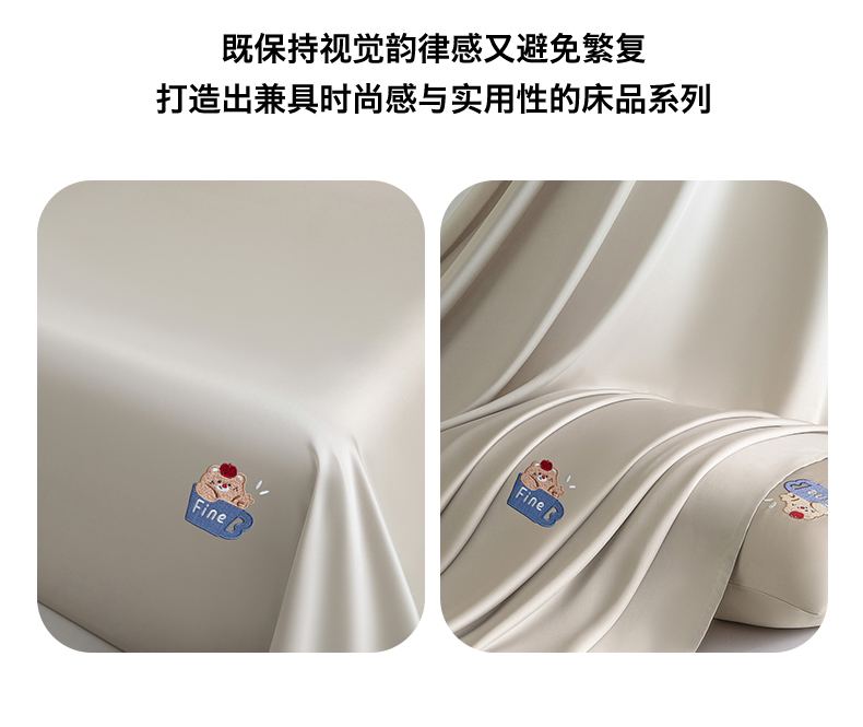 商品名称:DC 2026新款莱赛尔天丝卡通刺绣单品床单 冰川灰