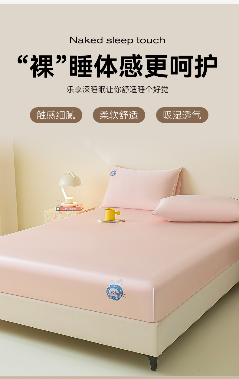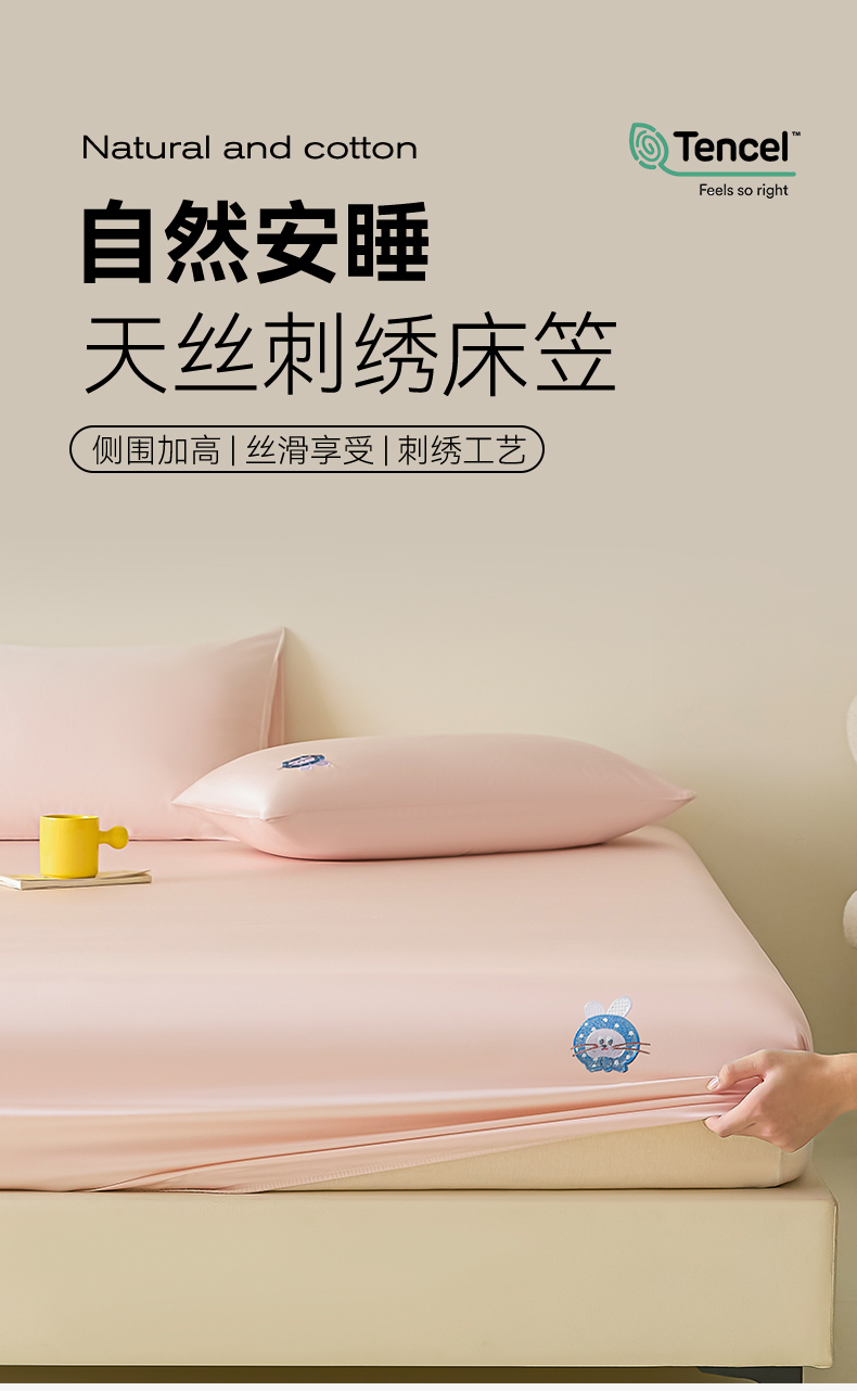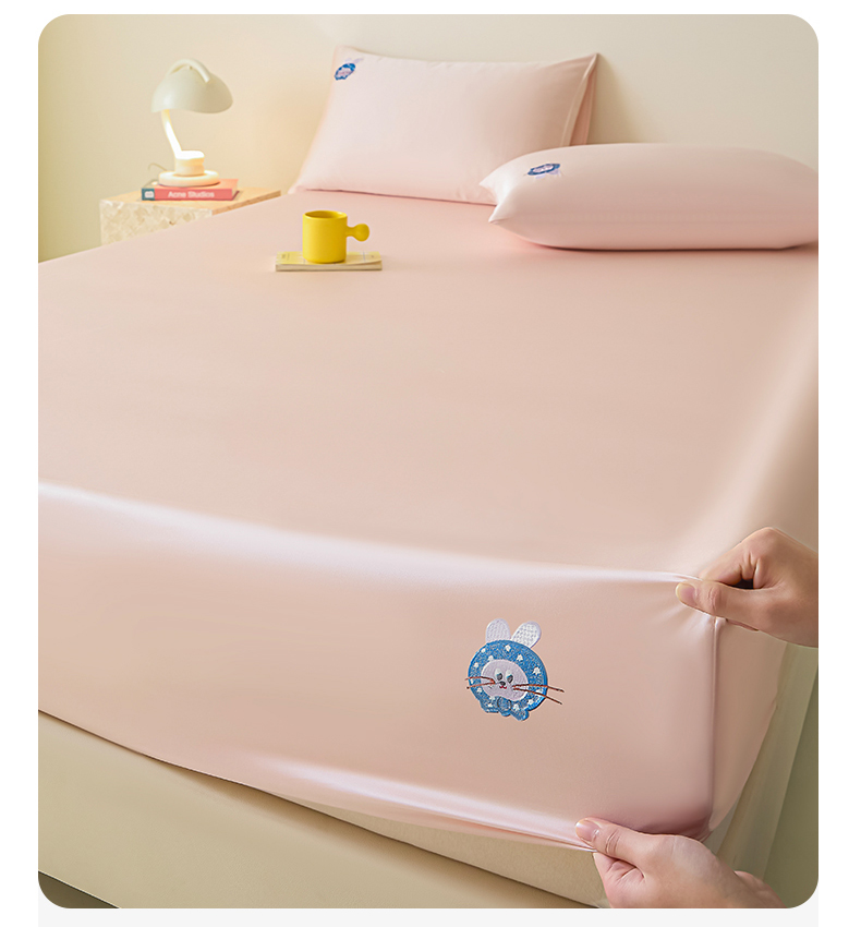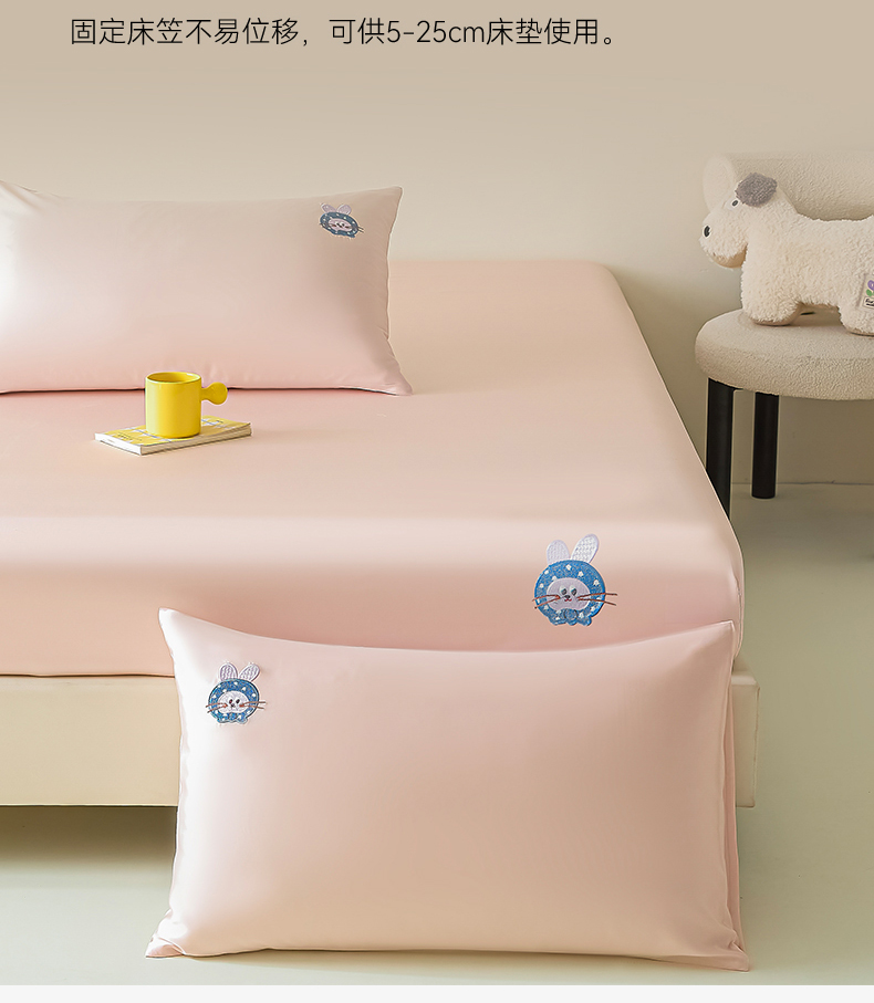 DC 2026新款莱赛尔天丝卡通刺绣单品床笠 冰雾粉