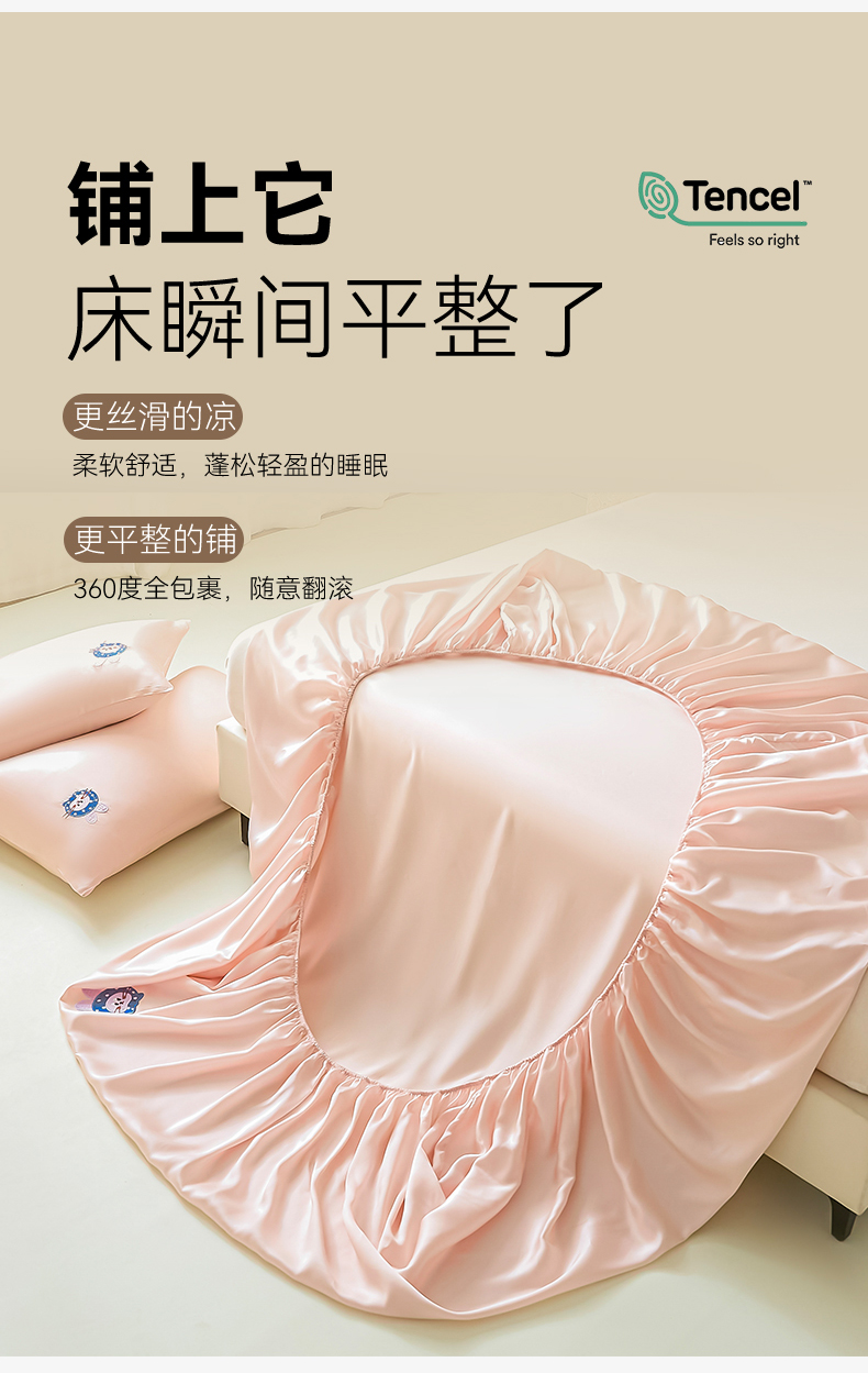 商品名称:DC 2026新款莱赛尔天丝卡通刺绣单品床笠 冰雾粉