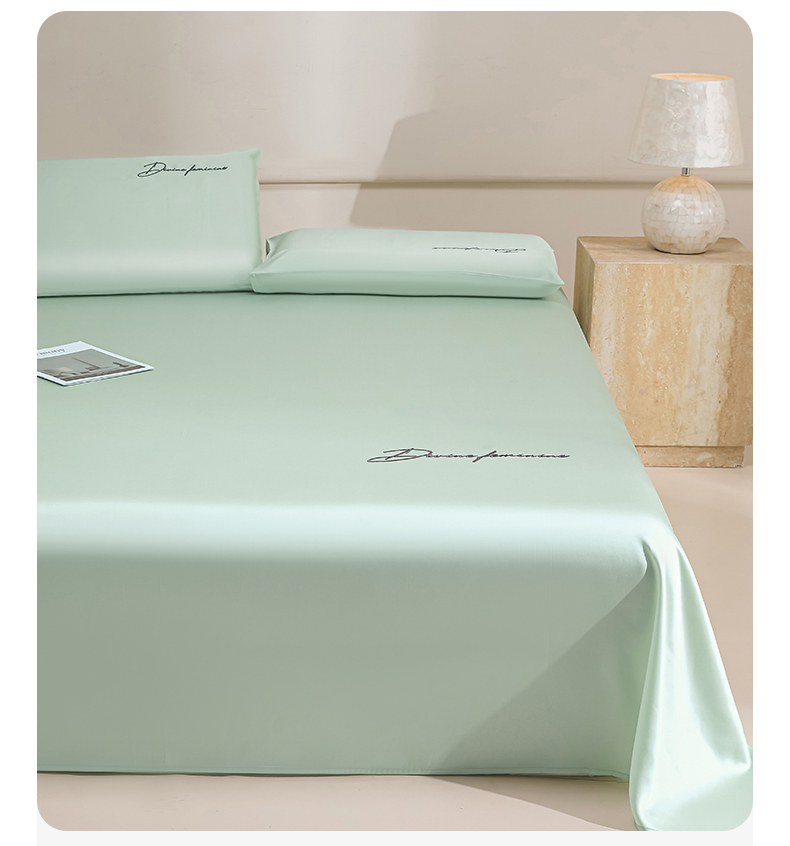 DC 2026新款莱赛尔天丝轻奢刺绣单品床单 亚丁绿