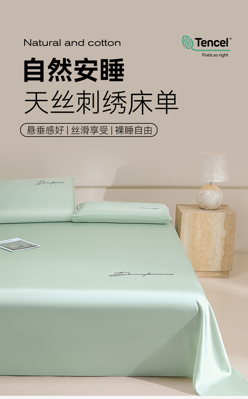 商品名称:DC 2026新款莱赛尔天丝轻奢刺绣单品床单 亚丁绿