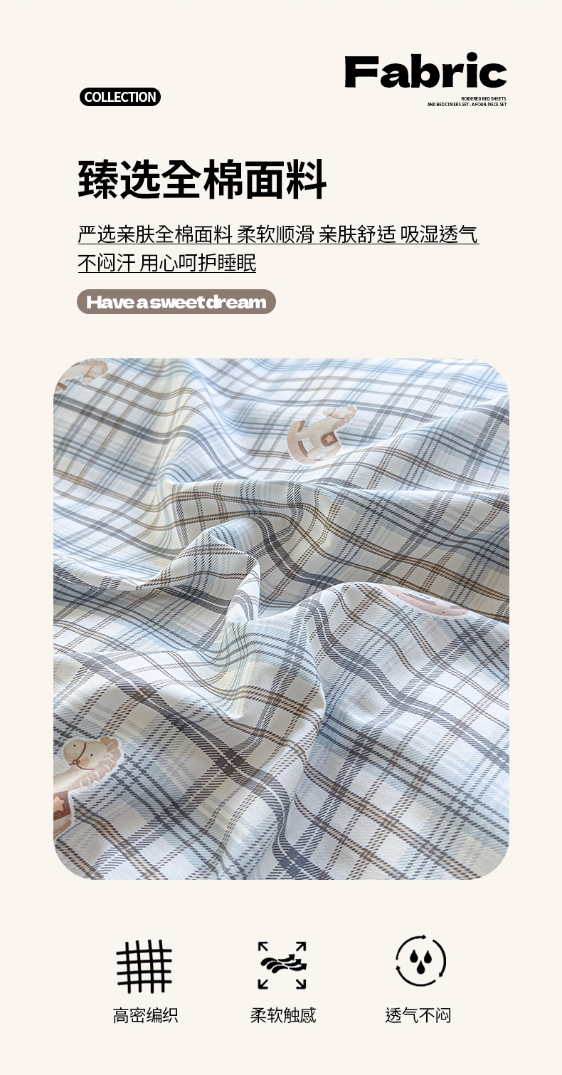 当前位置: 91家纺网 > 商品网购 > 床品套件 > 四件套 > 全棉普通四件套 > 琪琪阁家纺 2026新款加厚全棉纯棉四件套 木马格