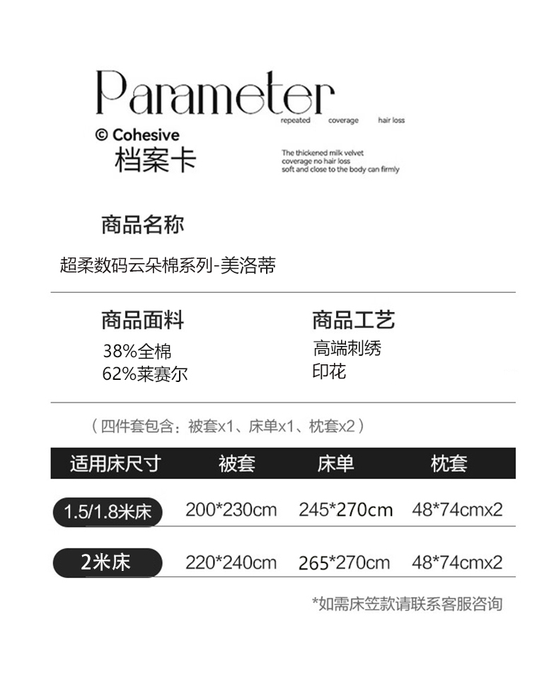 [{"sp_id":11,"sp_name":"\u989c\u8272","sp_format":2,"sp_list":[{"sp_value_id":1665,"sp_value_name":"\u7f8e\u6d1b\u8482-\u6811\u8393\u7c89","sp_value_image":{"id":999,"path":"https:\/\/img3.91jf.com\/ghelp\/2026\/20260412\/20260412192023_188648.jpg"},"sp_value_video":{"id":0,"img":"","path":"","time":0,"download_num":0,"play_num":0},"price":"325.00","storage":1500,"weight":"3.000","is_check_weight":0,"plus_price":"","sp_sort":0}]},{"sp_id":10,"sp_name":"\u5c3a\u5bf8","sp_format":1,"sp_list":[{"sp_value_id":41,"sp_value_name":"1.5m\u5e8a\u5355\u6b3e\u56db\u4ef6\u5957","sp_value_image":{"id":0,"path":""},"sp_value_video":{"id":0,"img":"","path":"","time":0,"download_num":0,"play_num":0},"price":"325.00","storage":500,"weight":"3.000","is_check_weight":0,"plus_price":"","sp_sort":5},{"sp_value_id":42,"sp_value_name":"1.8m\u5e8a\u5355\u6b3e\u56db\u4ef6\u5957","sp_value_image":{"id":0,"path":""},"sp_value_video":{"id":0,"img":"","path":"","time":0,"download_num":0,"play_num":0},"price":"325.00","storage":500,"weight":"3.000","is_check_weight":0,"plus_price":"","sp_sort":6},{"sp_value_id":43,"sp_value_name":"2.0m\u5e8a\u5355\u6b3e\u56db\u4ef6\u5957","sp_value_image":{"id":0,"path":""},"sp_value_video":{"id":0,"img":"","path":"","time":0,"download_num":0,"play_num":0},"price":"345.00","storage":500,"weight":"3.000","is_check_weight":0,"plus_price":"","sp_sort":7}]}]