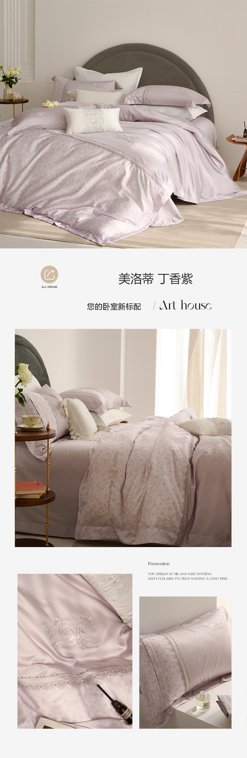 (总)诗黛尔 2026春夏新品云朵棉印花刺绣美洛蒂系列四件套,美洛蒂-丁香紫,美洛蒂-漫色灰,美洛蒂-浅米金,美洛蒂-树莓粉,美洛蒂-香草绿