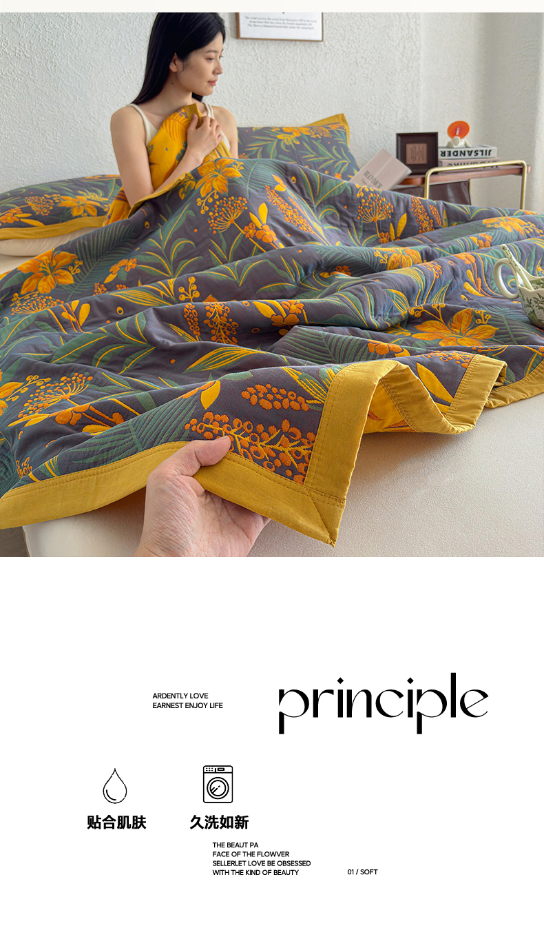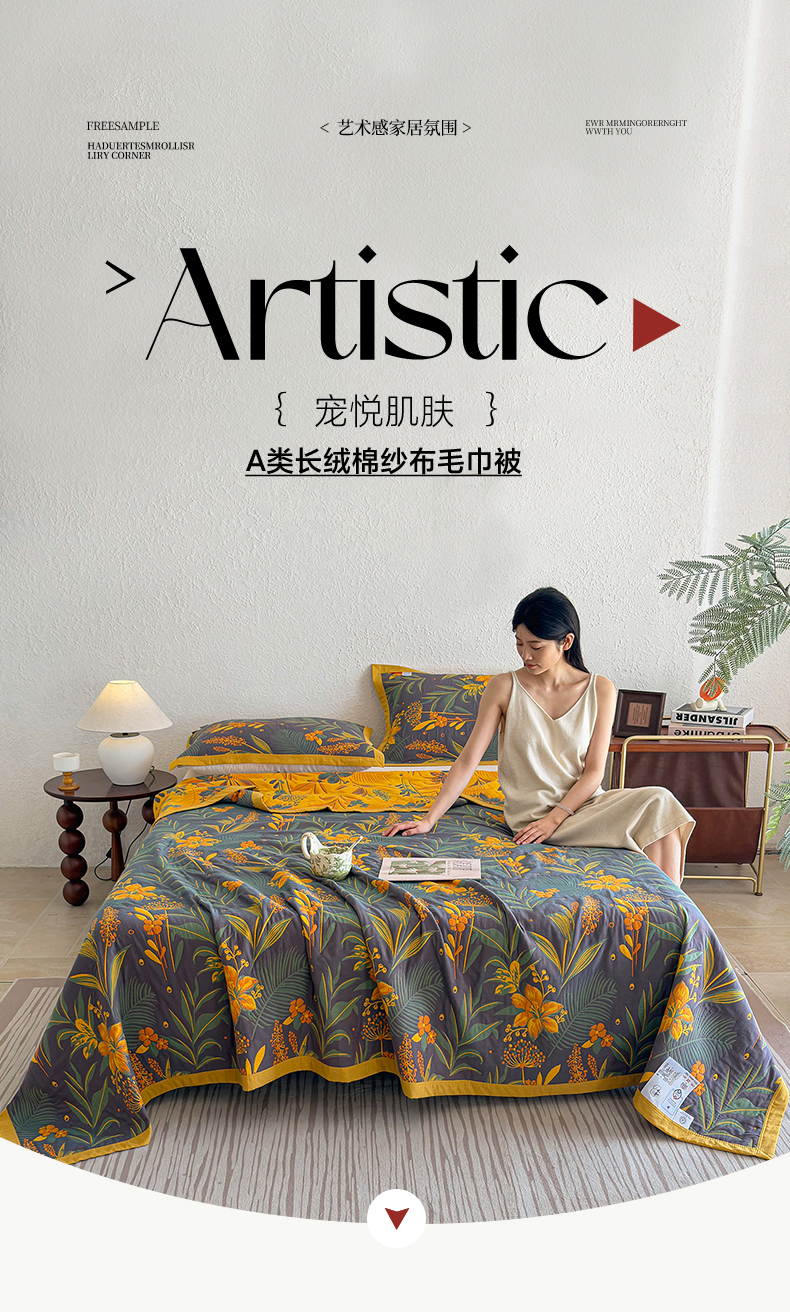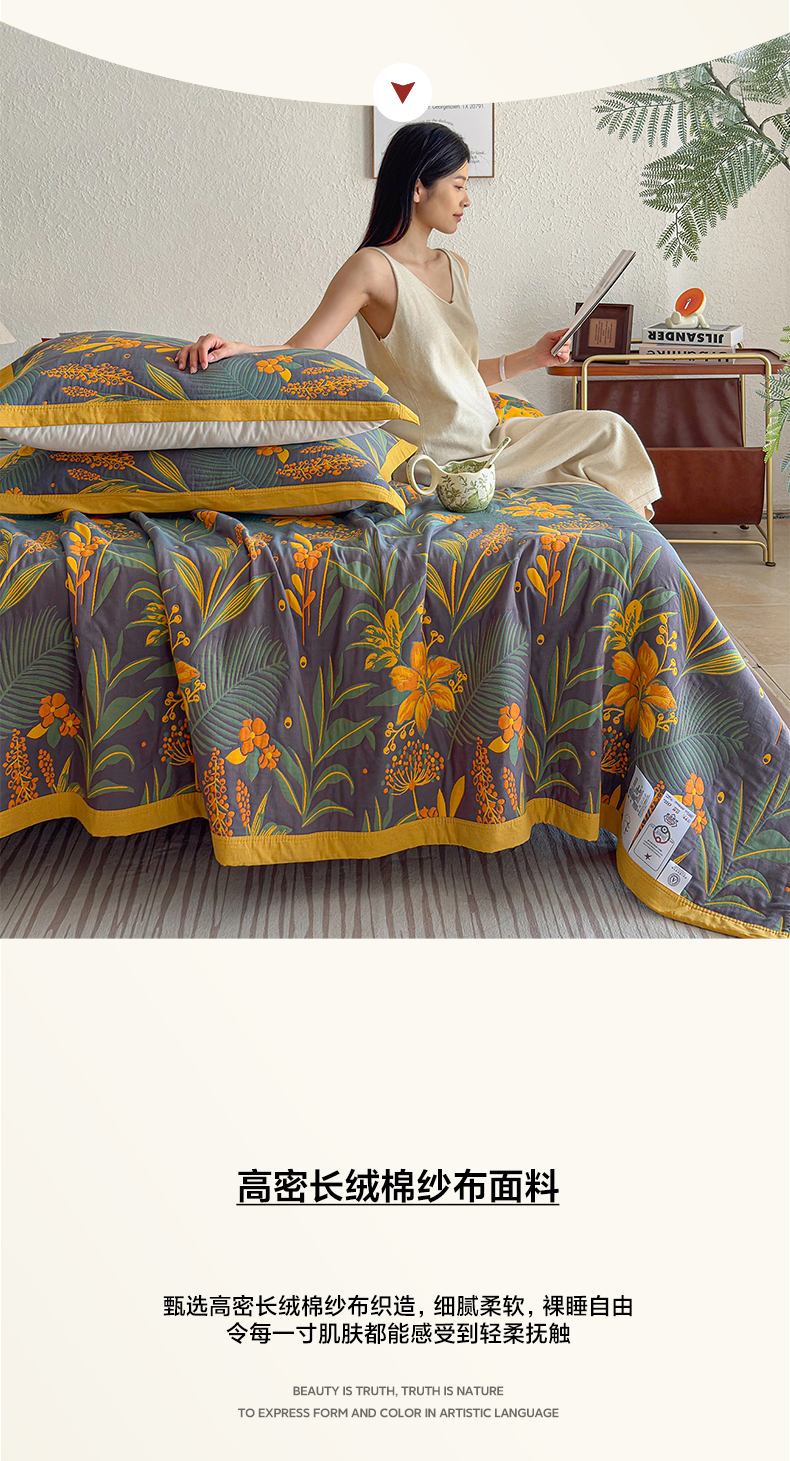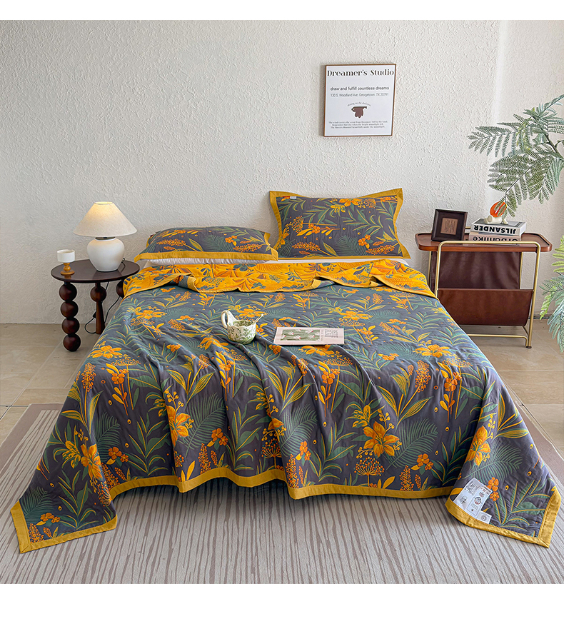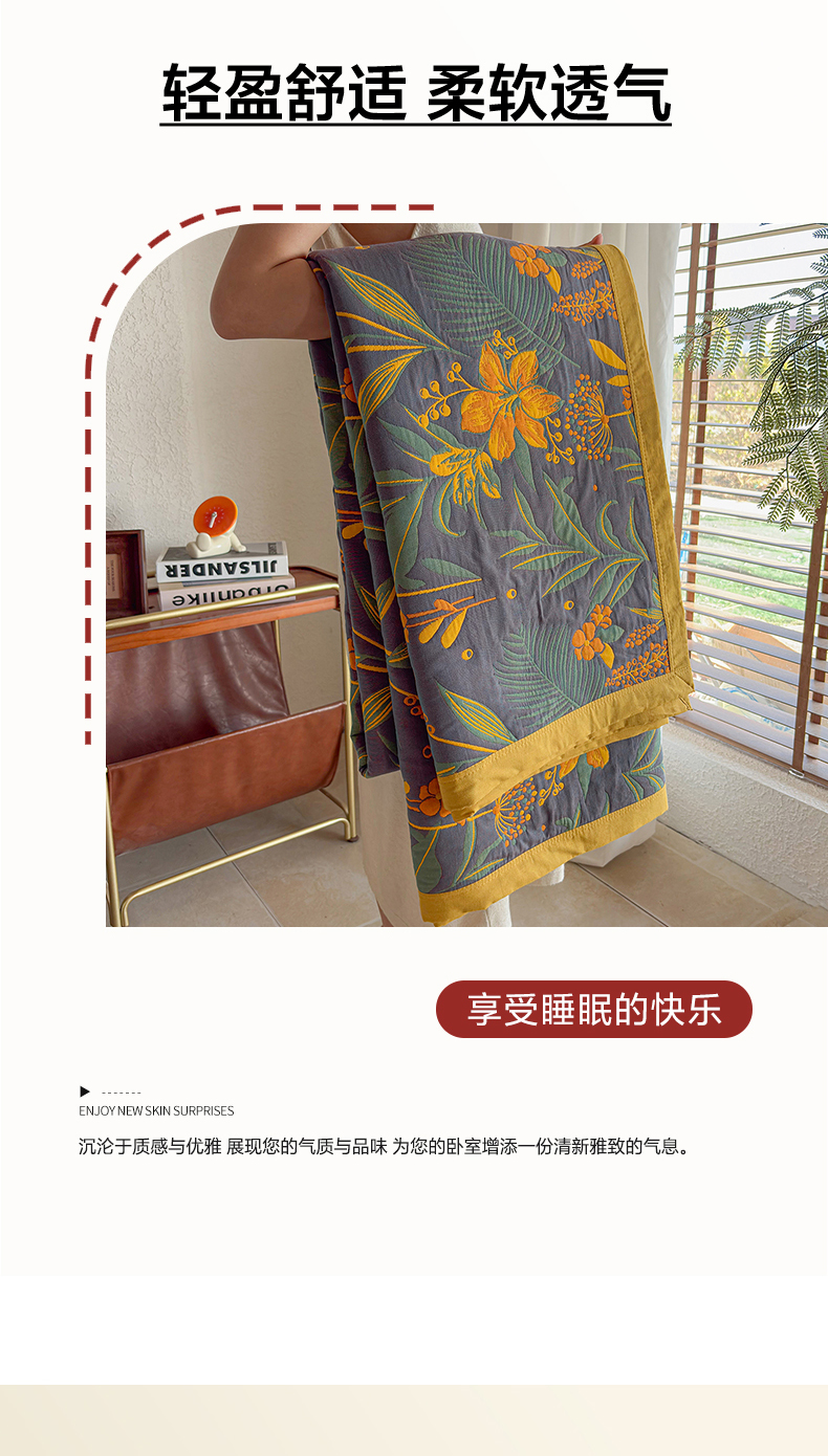 • 91家纺网 家纺一手货源 找家纺 棠薇家纺 2026新款纱布盖毯长绒棉纱布毛巾被夏被单双人棉纱盖毯毛巾毯夏季夏凉被空调被毯子可铺可盖床盖 花林秘境